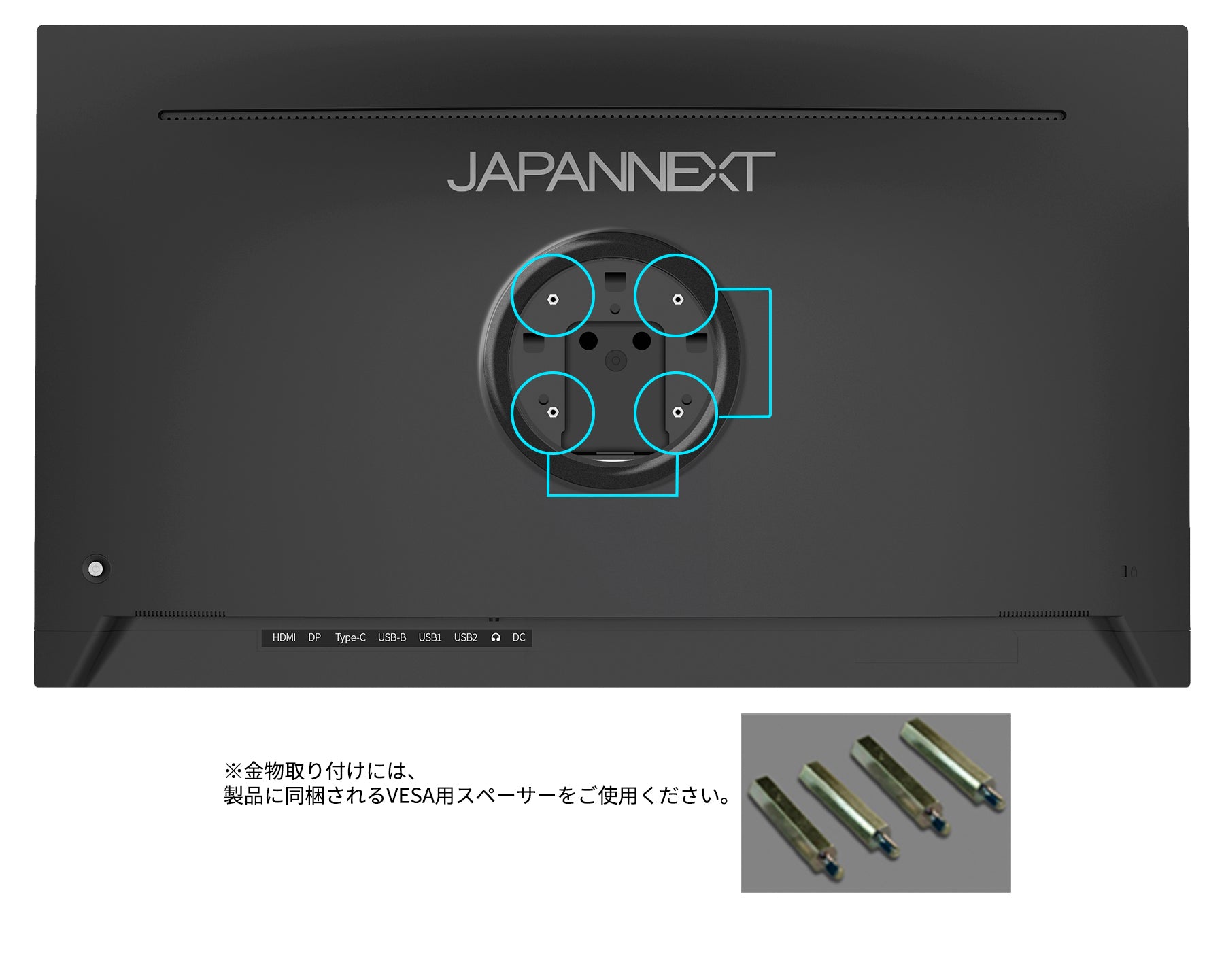 75x75mmのVESAマウントに対応しますので、別売りのモニターアームなどに使用が可能です。
