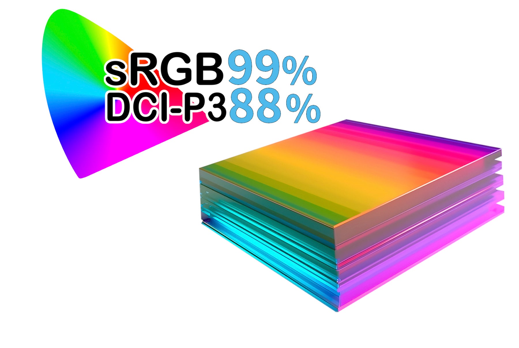 sRGB:99%, DCI-P3:88%、輝度400cd/m2の高性能パネルが画像を鮮やかな色彩でくっきりと表示します。