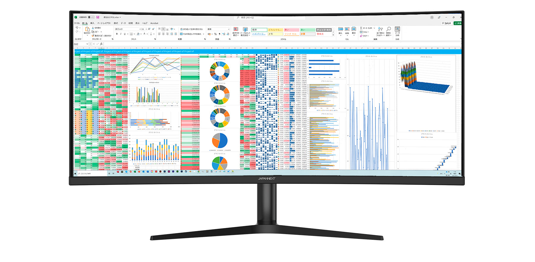 本製品は「UWQHD+」解像度に対応したウルトラワイド液晶モニターです。 作業領域は3840x1600ドットの超解像度です。