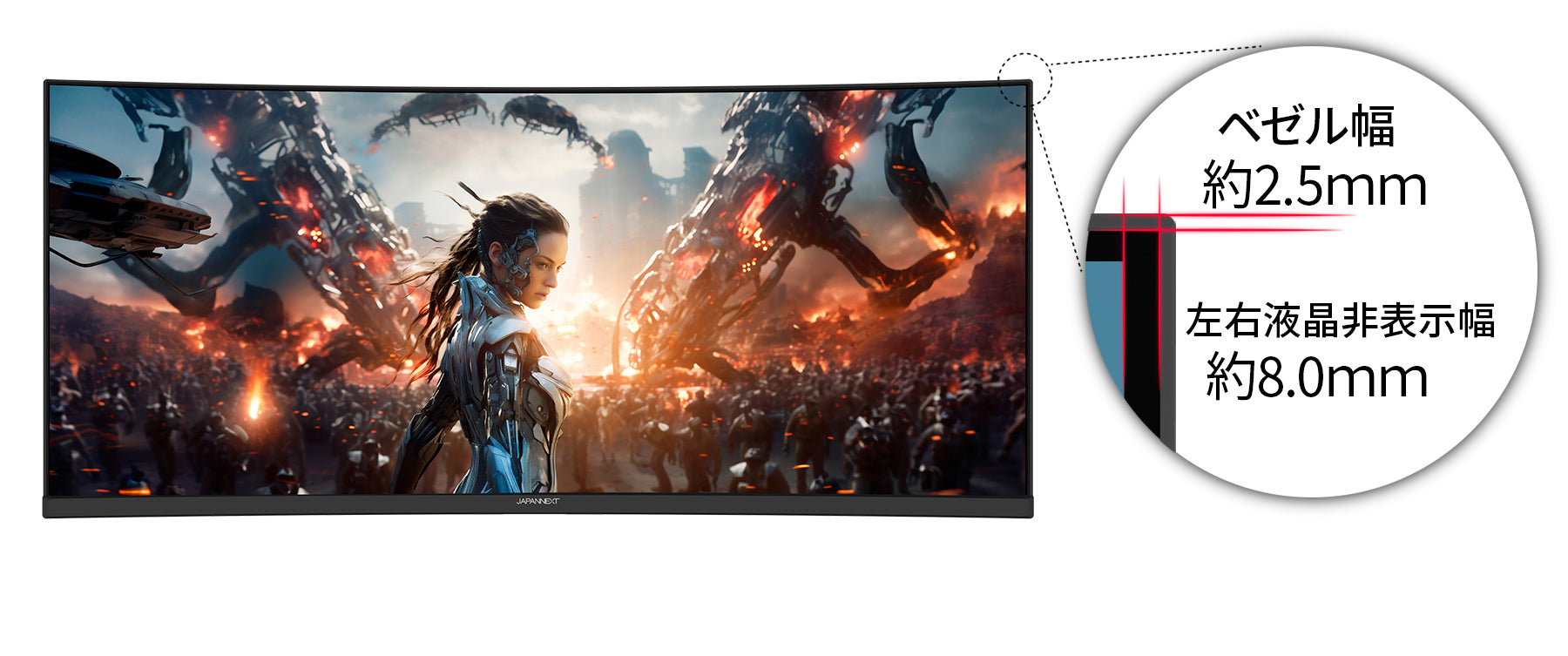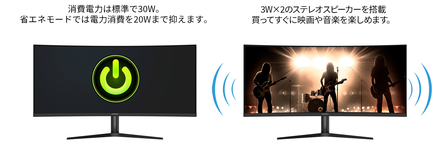 湾曲率R2300のウルトラワイドスクリーンが高い没入感を実現します。