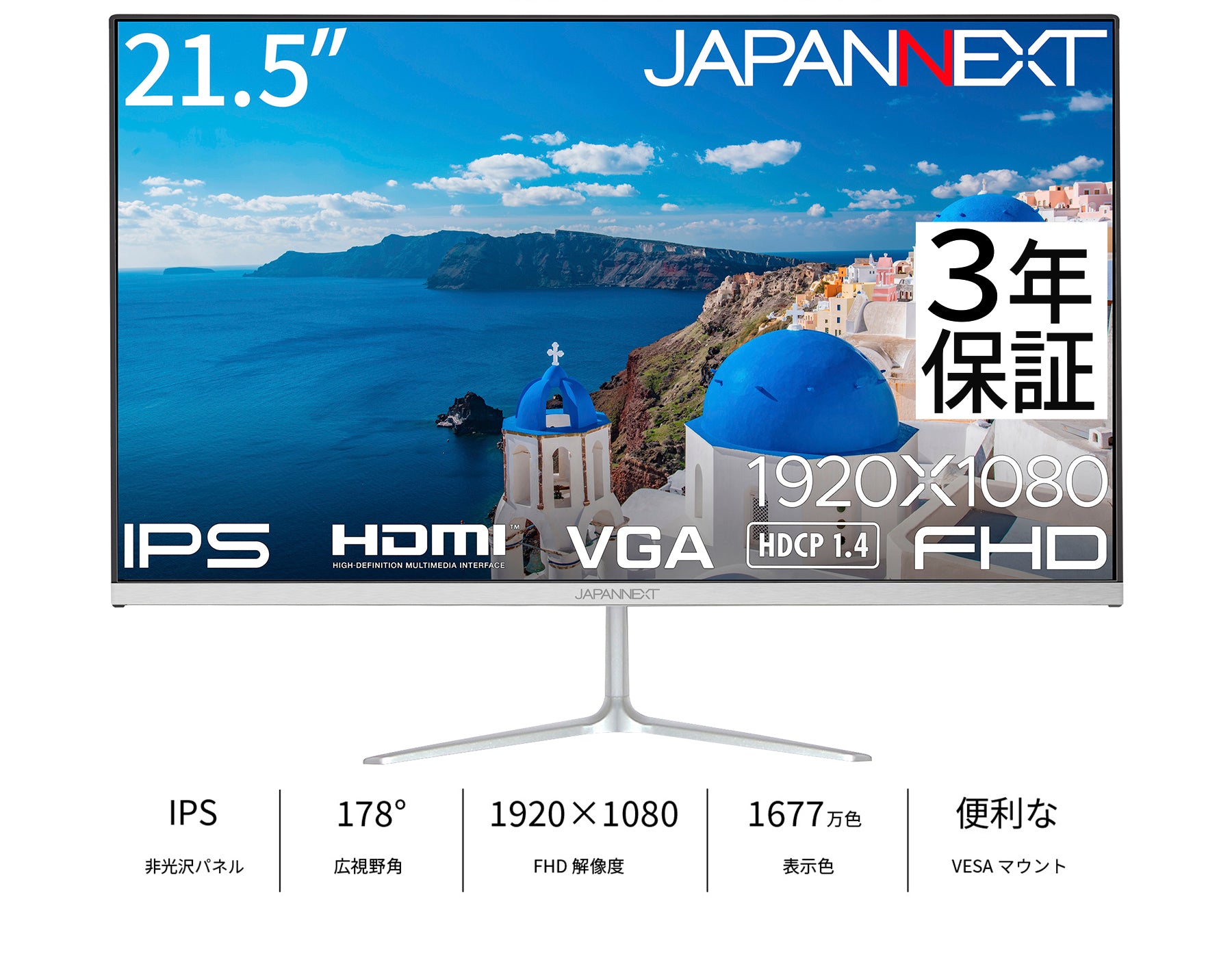 21.5インチのIPSパネルを搭載、使いやすいフルHD解像度(1920 x 1080)に対応した液晶モニターです。
