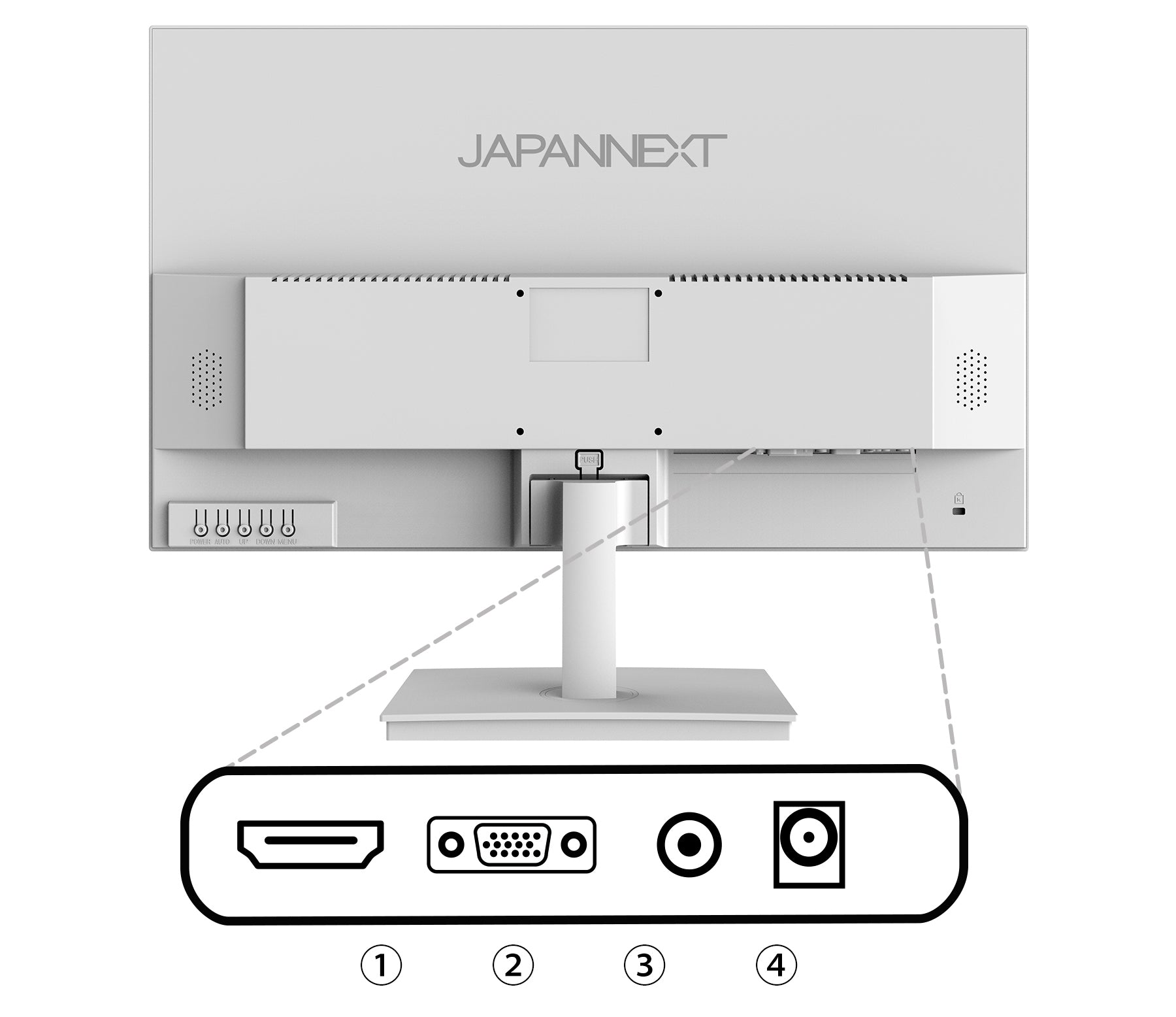 また、75x75mmのVESAマウントに対応しており、別売りのモニターアームなどに使用が可能です。2Wx2のスピーカーを内蔵しております。