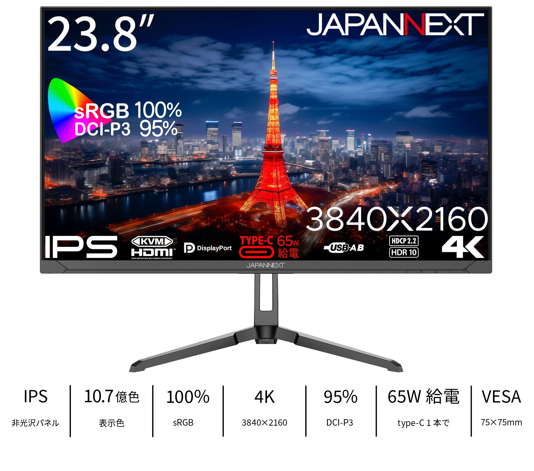 23.8” IPSパネル搭載 4Kモニター