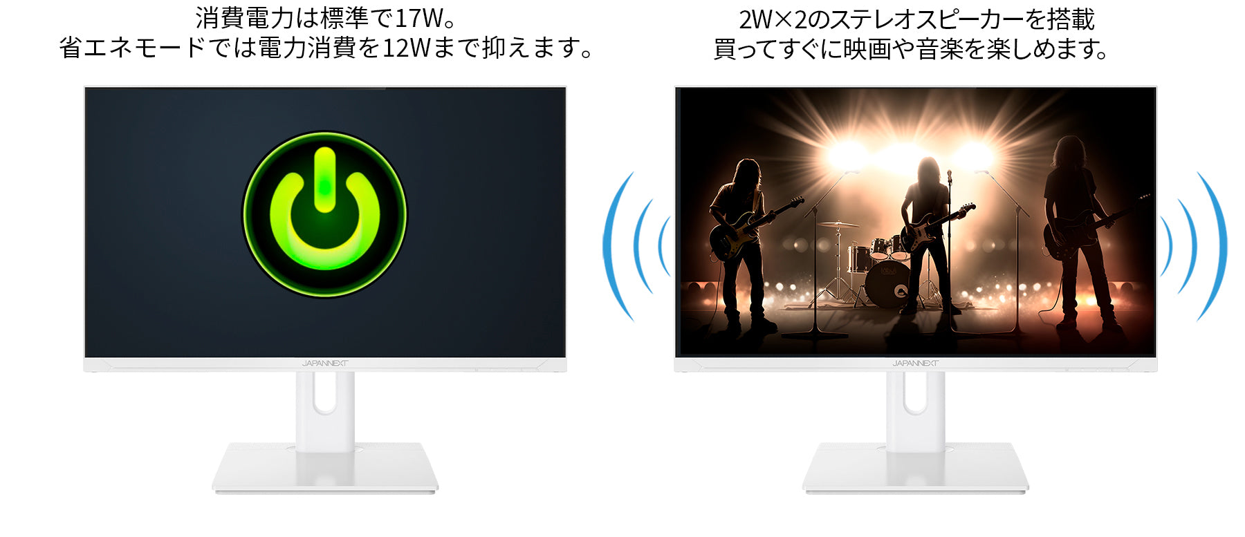 上下左右178°の視野角度を持つIPSパネルは標準的なTNパネルと異なり、 斜めから見ても色やコントラスト変化がおきにくい鮮明な画像を映し出します。