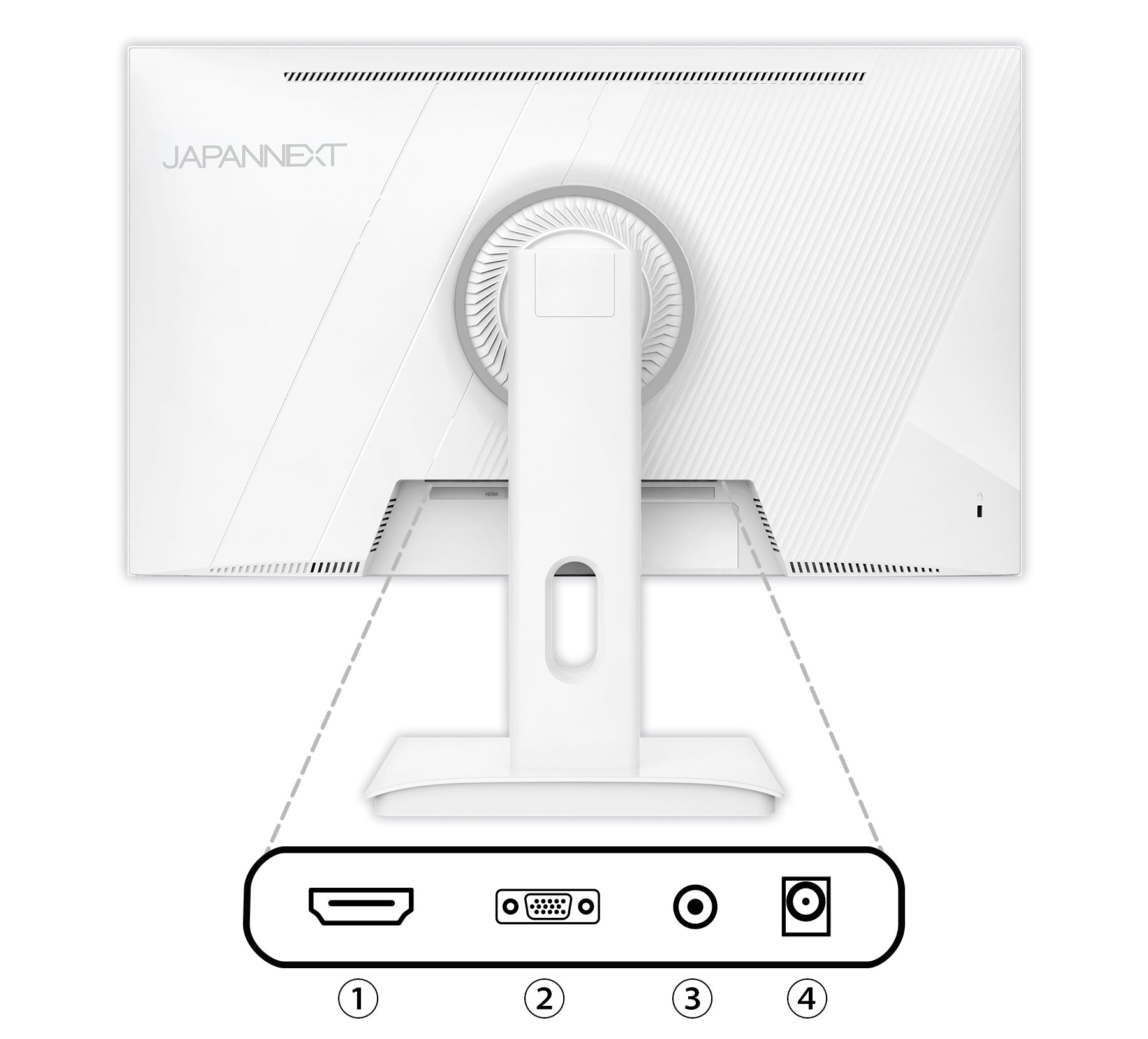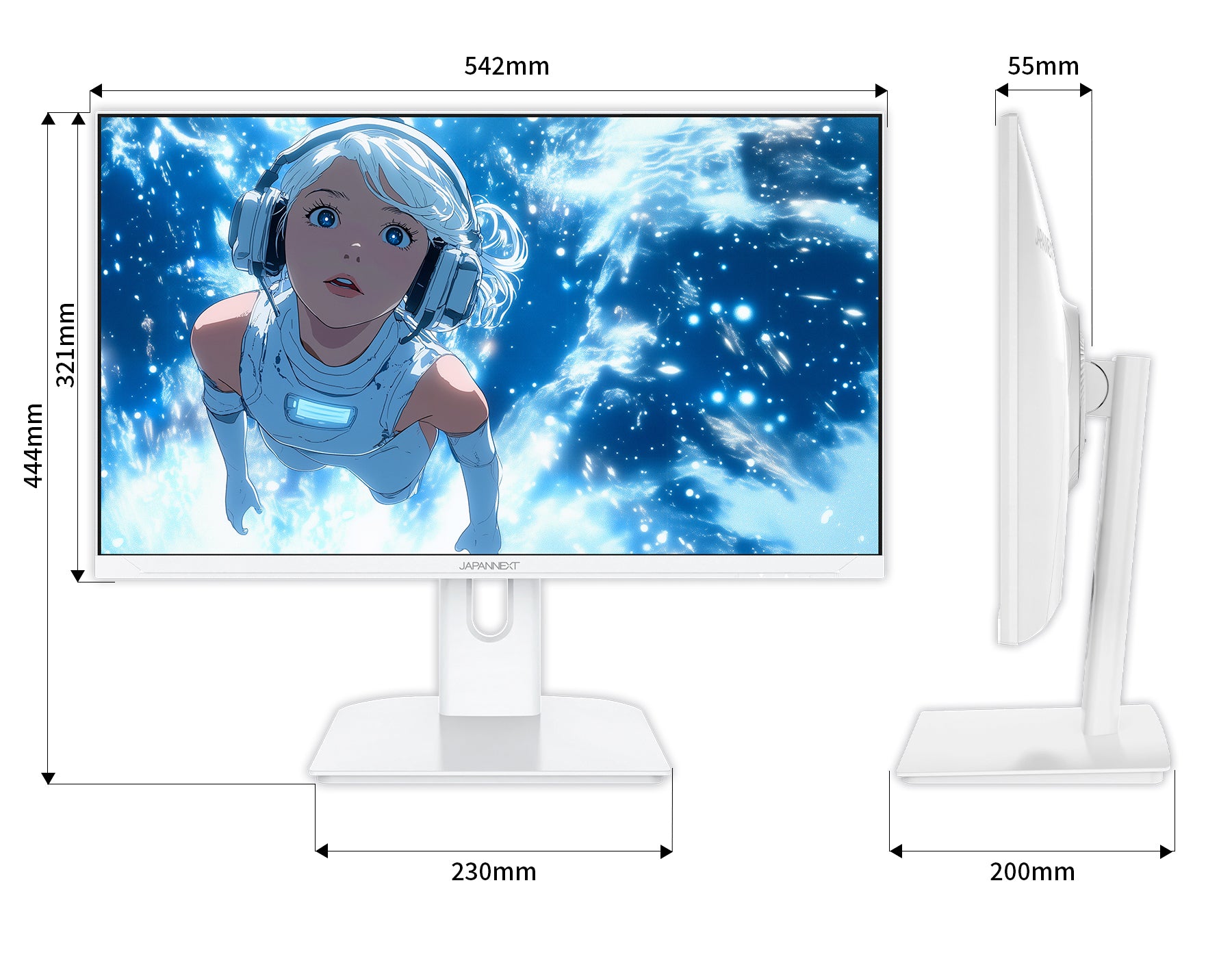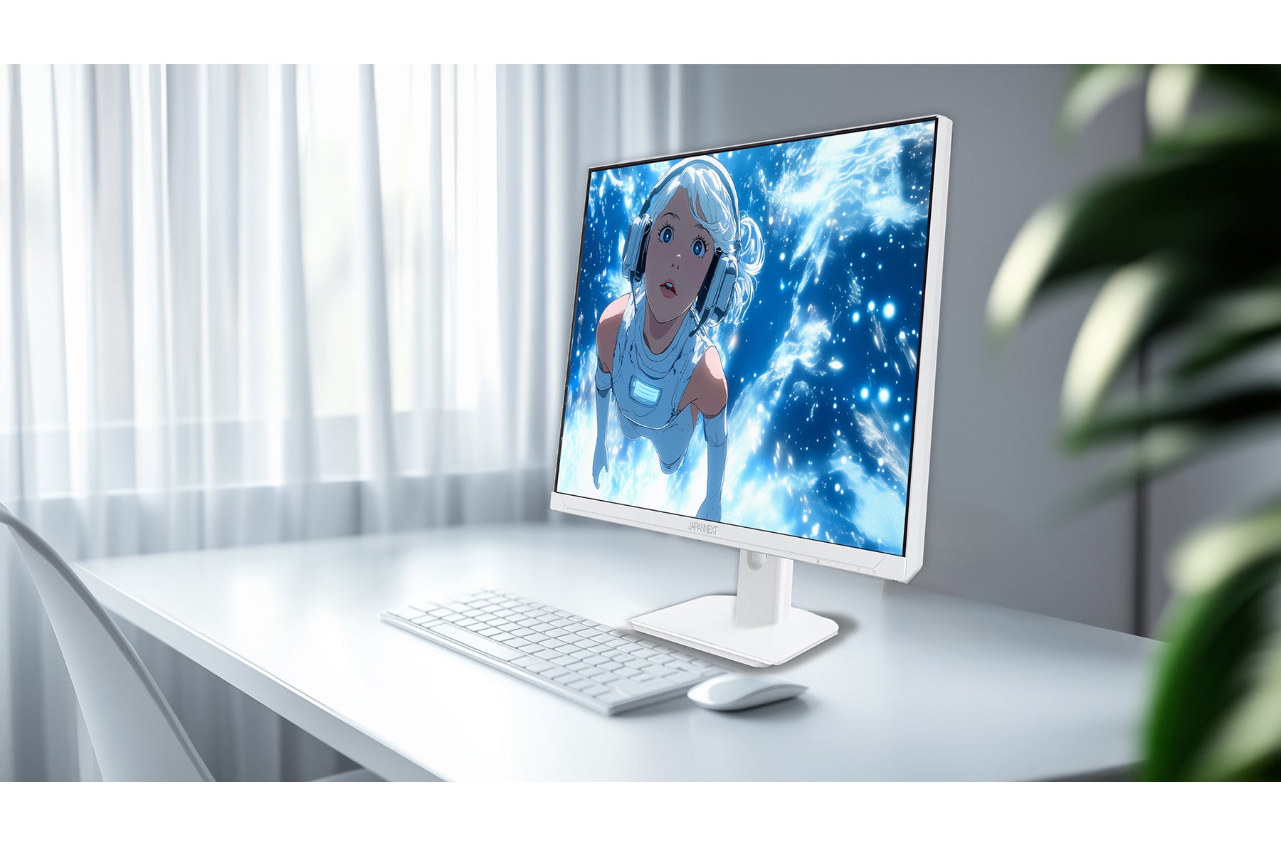 本体カラーにはホワイトを採用。モニターベゼルやスタンドも同じカラーで統一されており、おしゃれな空間を演出したい方や、デバイスのカラーを揃えたい方にも最適です。さらに、付属のケーブルと電源アダプターにはホワイトを採用。個性的な本体カラーの魅力を引き立てながら、自然に調和します。