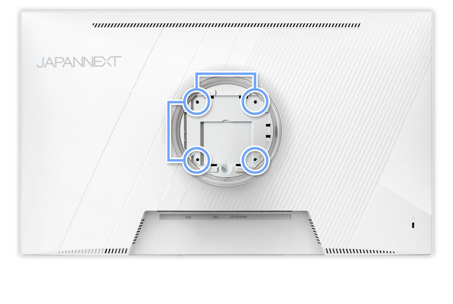75x75mmのVESAマウントに対応、別売のモニターアームやモニタースタンドなどへの取り付けが可能です。