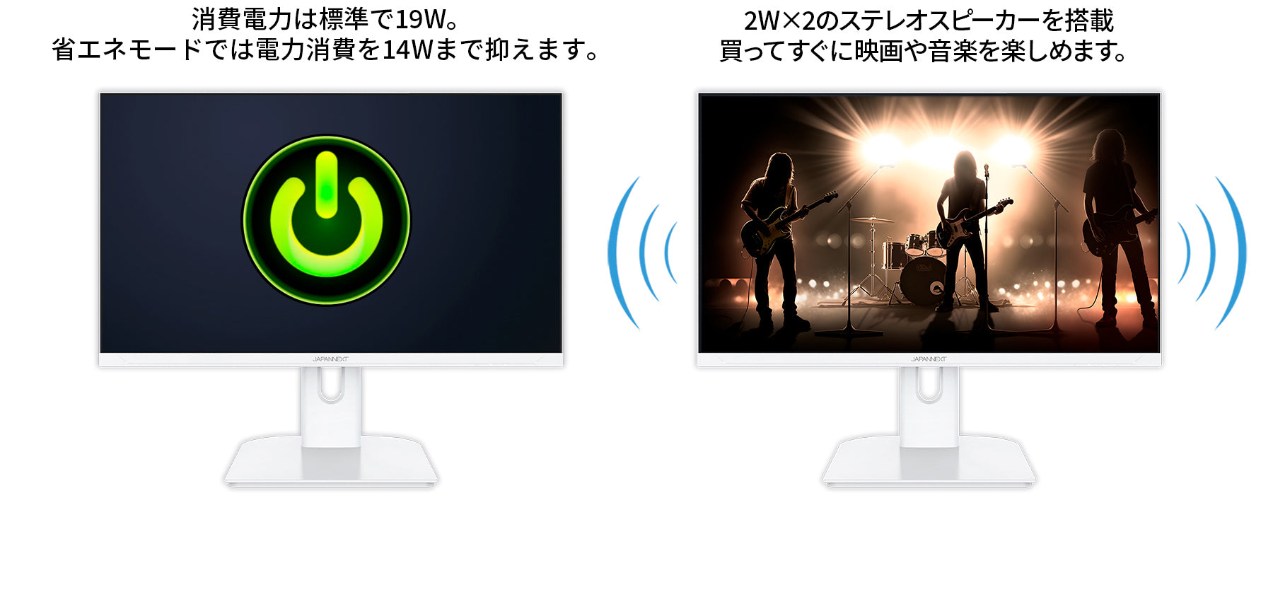 上下左右178°の視野角度を持つIPSパネルは標準的なTNパネルと異なり、 斜めから見ても色やコントラスト変化がおきにくい鮮明な画像を映し出します。