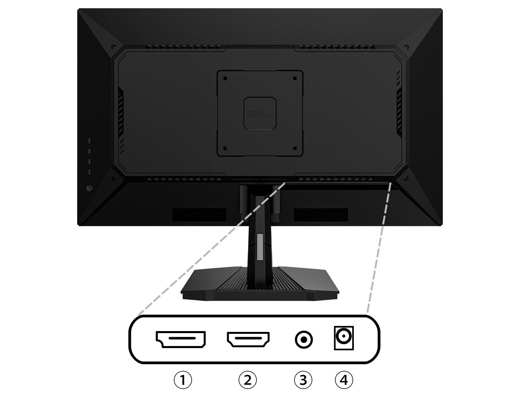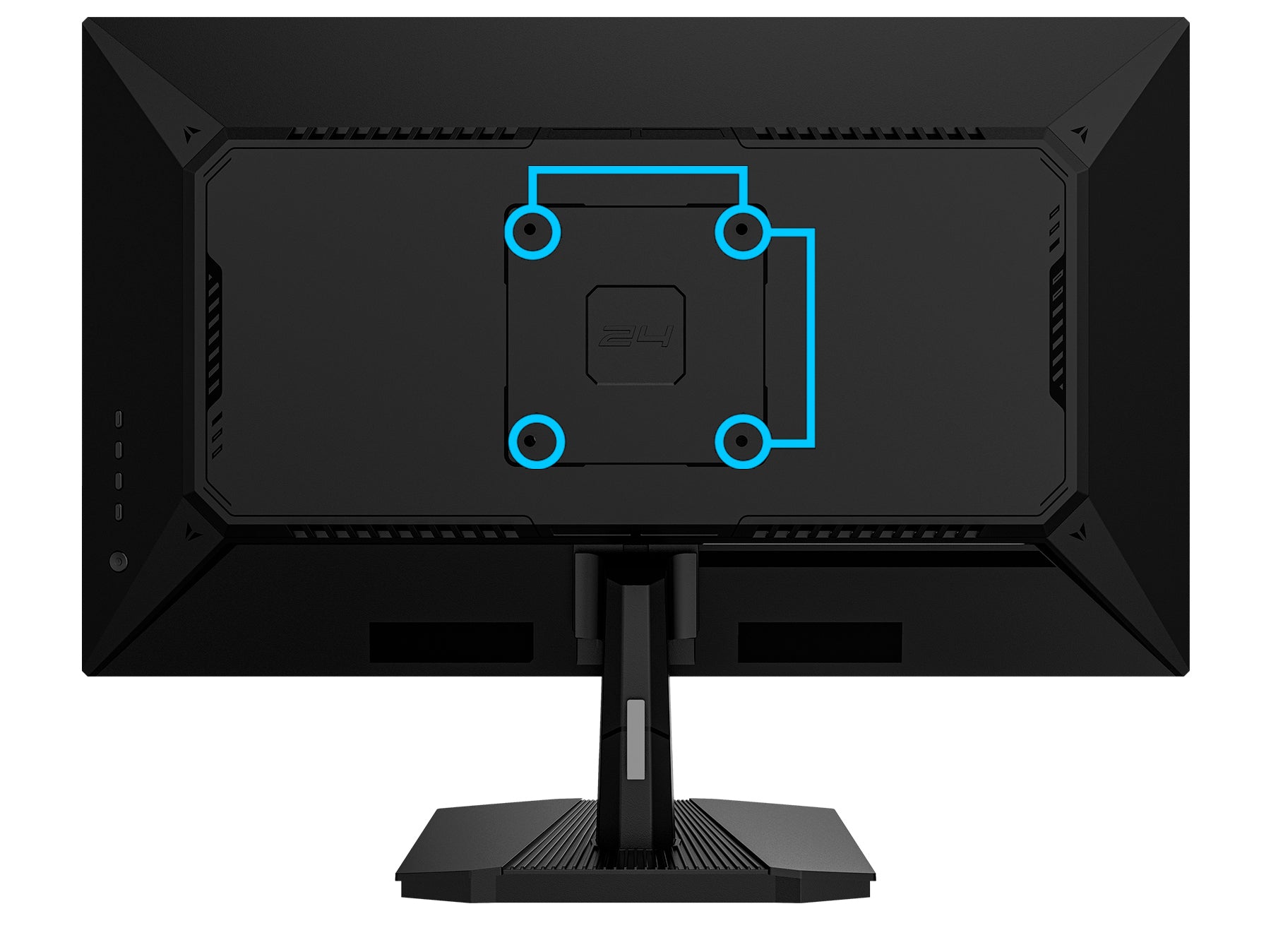 100x100mmのVESAマウントに対応、別売のモニターアームやモニタースタンドなどへの取り付けが可能です。