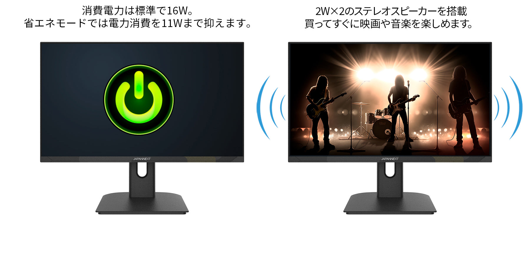 75x75mmのVESAマウントに対応、別売のモニターアームやモニタースタンドなどへの取り付けが可能です。2Wx2のスピーカーを搭載します。