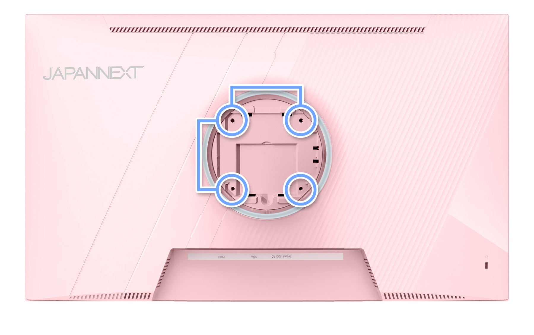 75x75mmのVESAマウントに対応、別売のモニターアームやモニタースタンドなどへの取り付けが可能です。