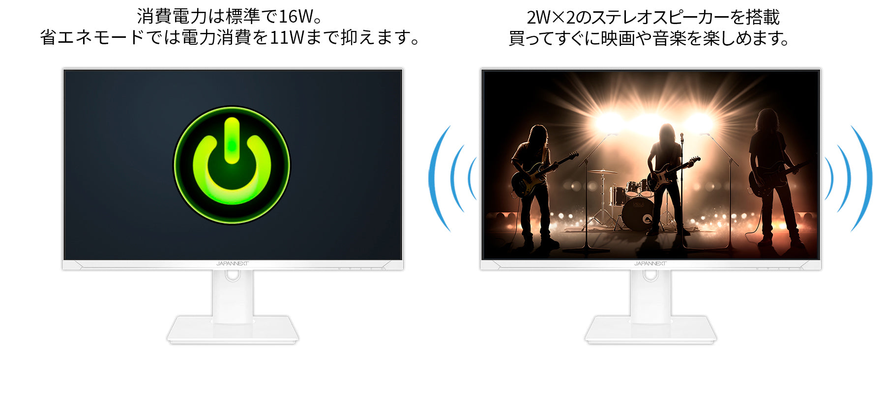 上下左右178°の視野角度を持つIPSパネルは標準的なTNパネルと異なり、 斜めから見ても色やコントラスト変化がおきにくい鮮明な画像を映し出します。
