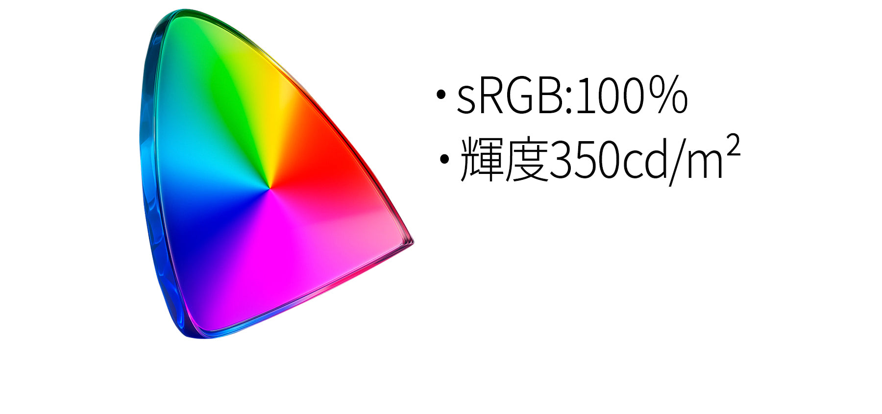 sRGB : 100%、輝度 : 350cd/m²の高性能パネルが、鮮やかで精緻な色彩表現を実現します。