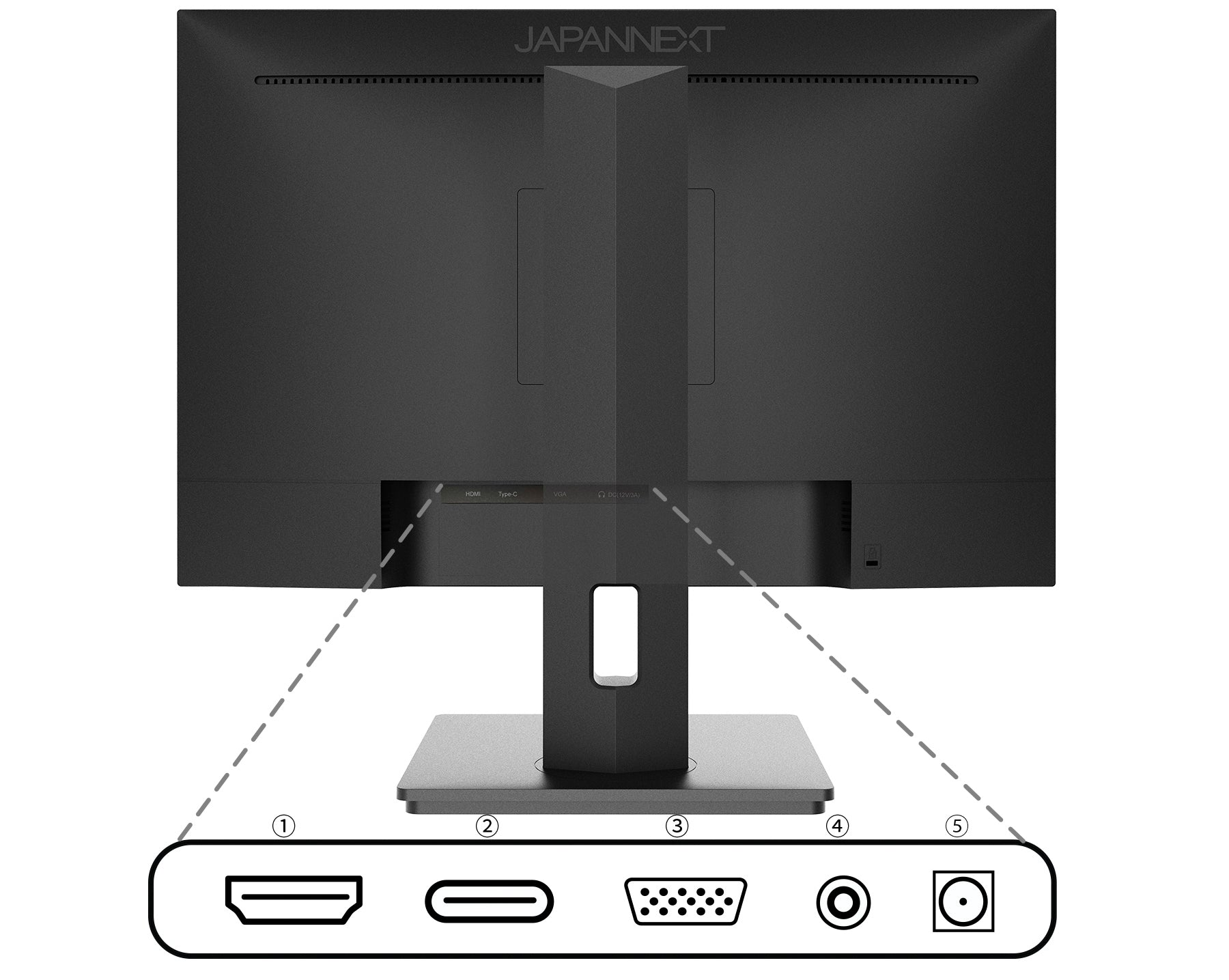 インターフェイスはHDMI1.4端子を1つとUSB Type-Cの端子を1つ、さらにVGA端子を1つ搭載しています。USB Type-C端子は最大15Wの給電が可能、USB Type-Cの端子を搭載したスマートフォンの充電に対応しております。また一部の対応スマートフォンの場合には、画面を表示することも可能です。※ご使用のスマートフォンがUSB-Cからの映像出力に対応しているかご確認ください。