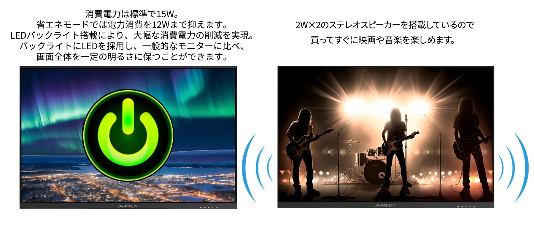 上下左右178°の視野角度を持つIPSパネルは標準的なTNパネルと異なり、 斜めから見ても色やコントラスト変化がおきにくい鮮明な画像を映し出します。