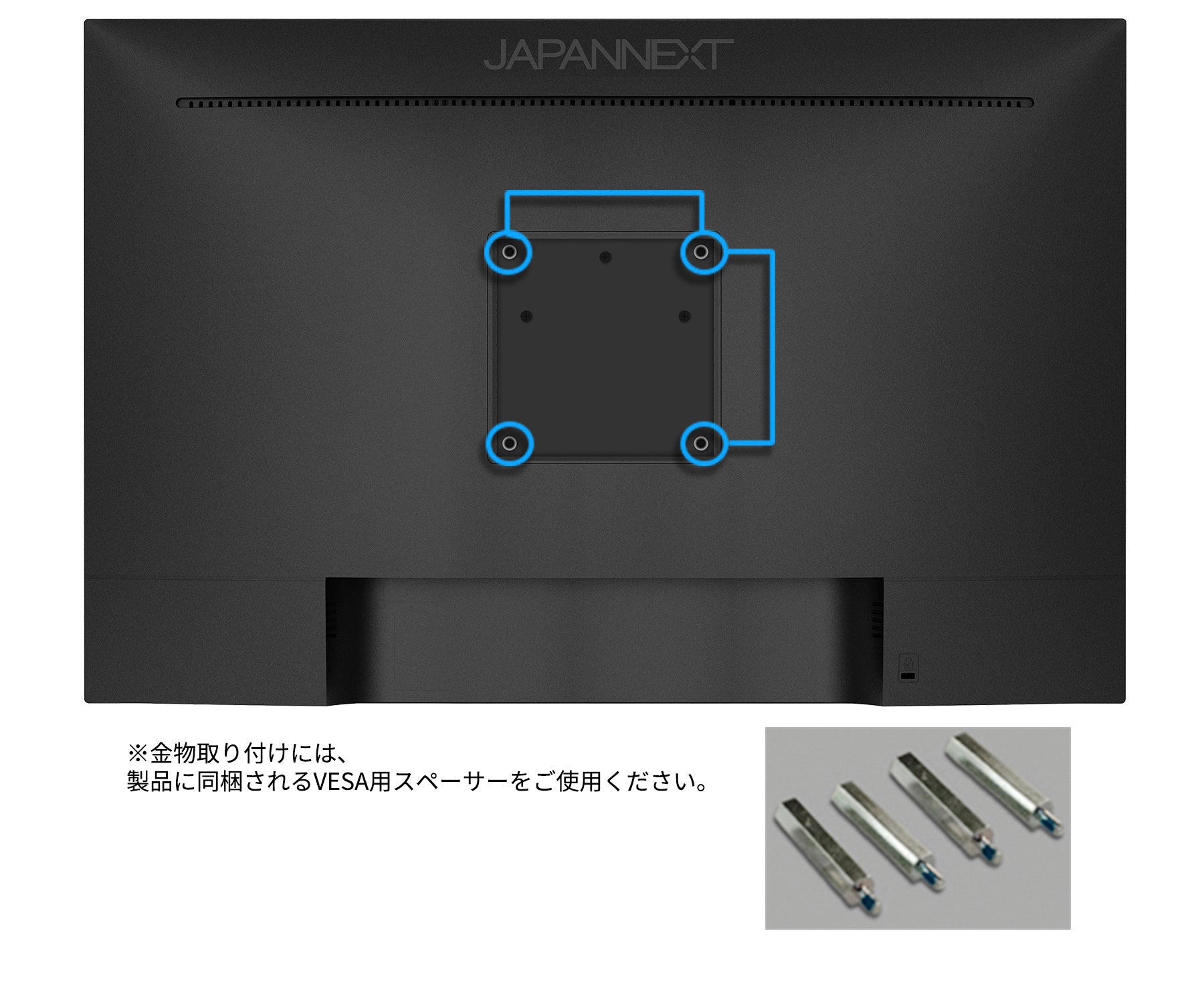 100x100mmのVESAマウントに対応しているので別売のモニターアームやモニタースタンドへの取り付けが可能です。