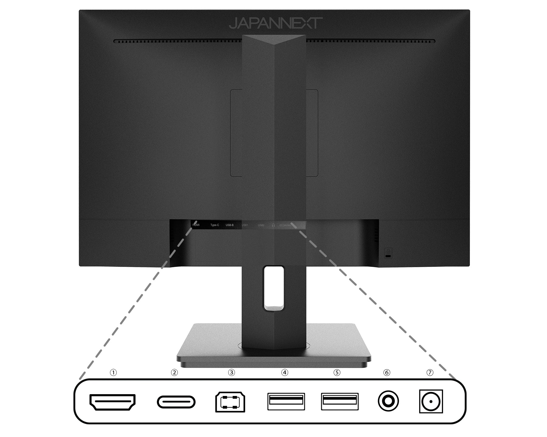 インターフェイスはHDMI 1.4端子 x1とUSB-C(最大65W給電)x1を装備し様々なタイプの機器との接続が可能です。USB-C(最大65W給電)は、対応のPCであればUSB-Cケーブル1本でモニターへの映像出力とノートPCへの給電が可能。ケーブル1本でスッキリ接続出来るだけでなく、テレワーク、出社併用の場合などノートPCのACアダプターを持ち運ぶ必要が無くなります。