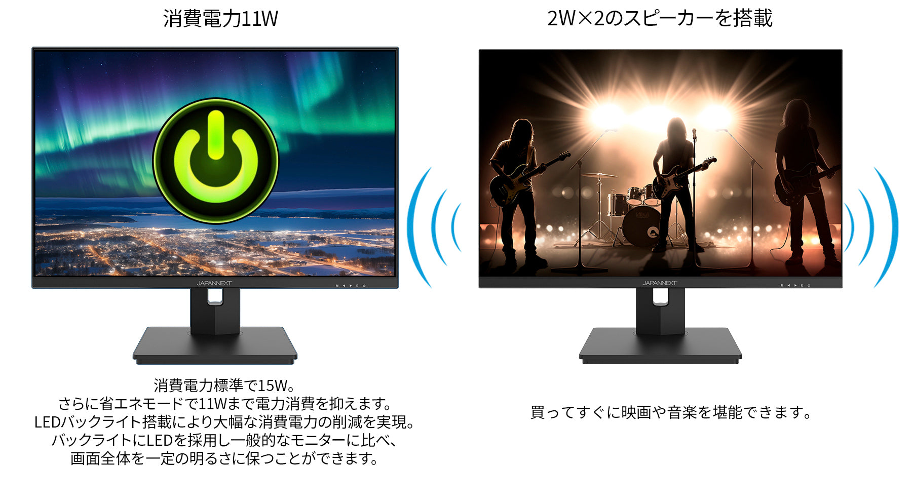 WUXGA(1920x1200)解像度(アスペクト比16:10)は、従来のフルHD(1920x1080)解像度(アスペクト比16:9)より縦の解像度が11%大きいので、ニュースやブログなどのウェブサイトを一度に表示できるコンテンツ量が増えます。上下左右178度に対応した広視野角IPSパネルを搭載。コンテンツを色鮮やかに映し出します。