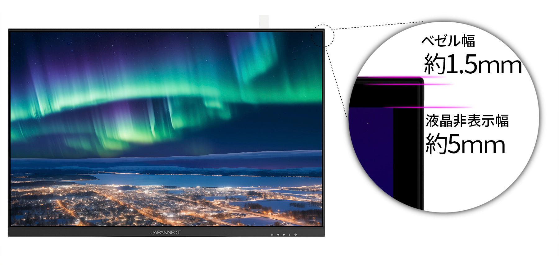 上下左右178°の視野角度を持つIPSパネルは標準的なTNパネルと異なり、 斜めから見ても色やコントラスト変化がおきにくい鮮明な画像を映し出します。