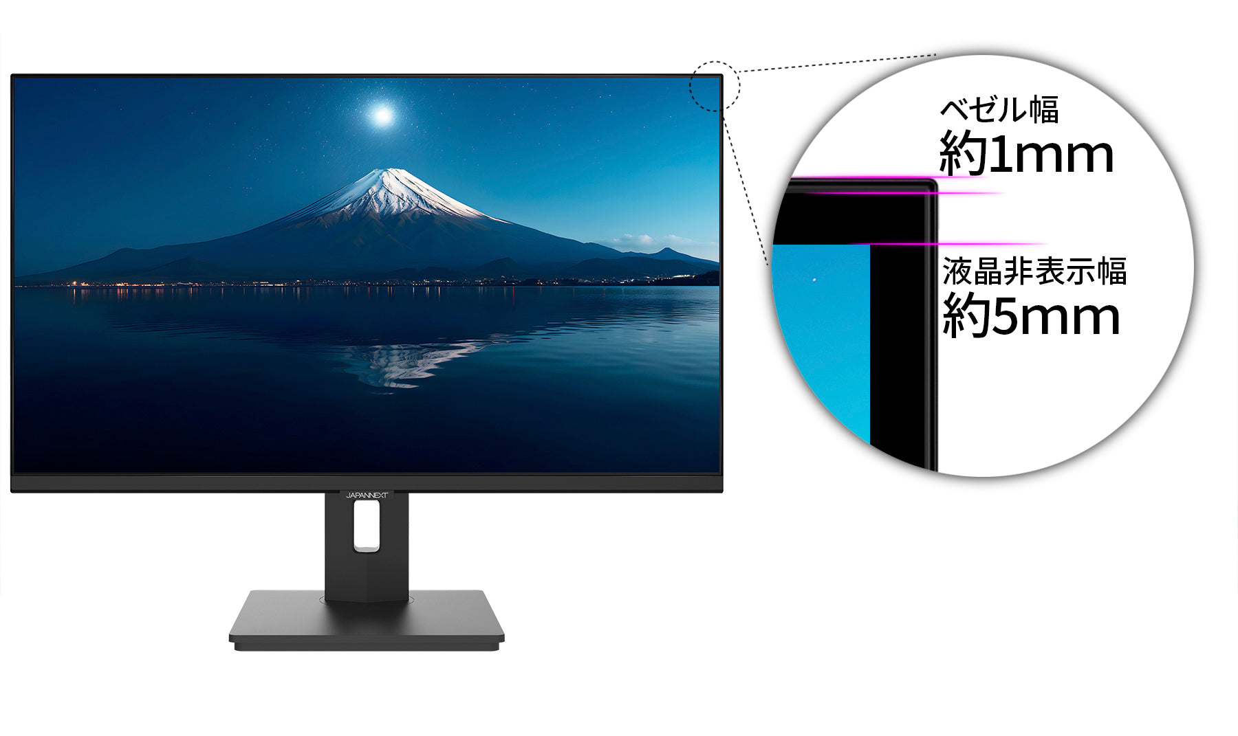 上下左右178°の視野角度を持つIPSパネルは標準的なTNパネルと異なり、 斜めから見ても色やコントラスト変化がおきにくい鮮明な画像を映し出します。