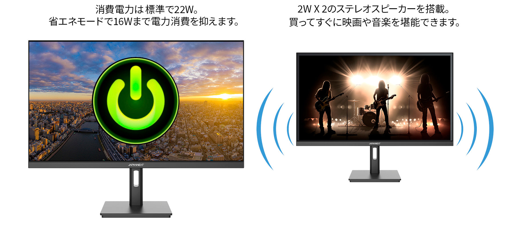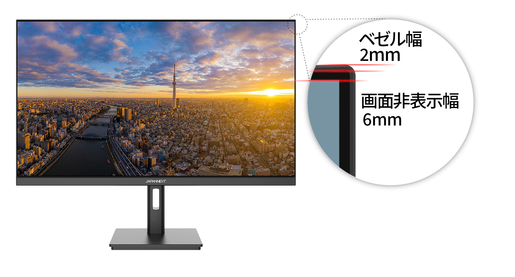 上下左右178°の視野角度を持つIPSパネルは標準的なTNパネルと異なり、 斜めから見ても色やコントラスト変化がおきにくい鮮明な画像を映し出します。