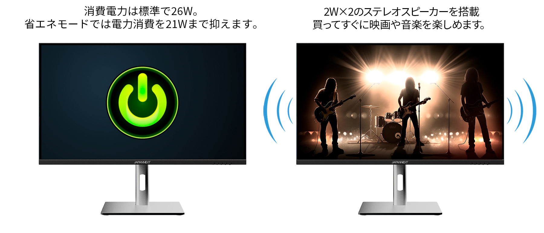 2Wx2のスピーカーを内蔵します。
