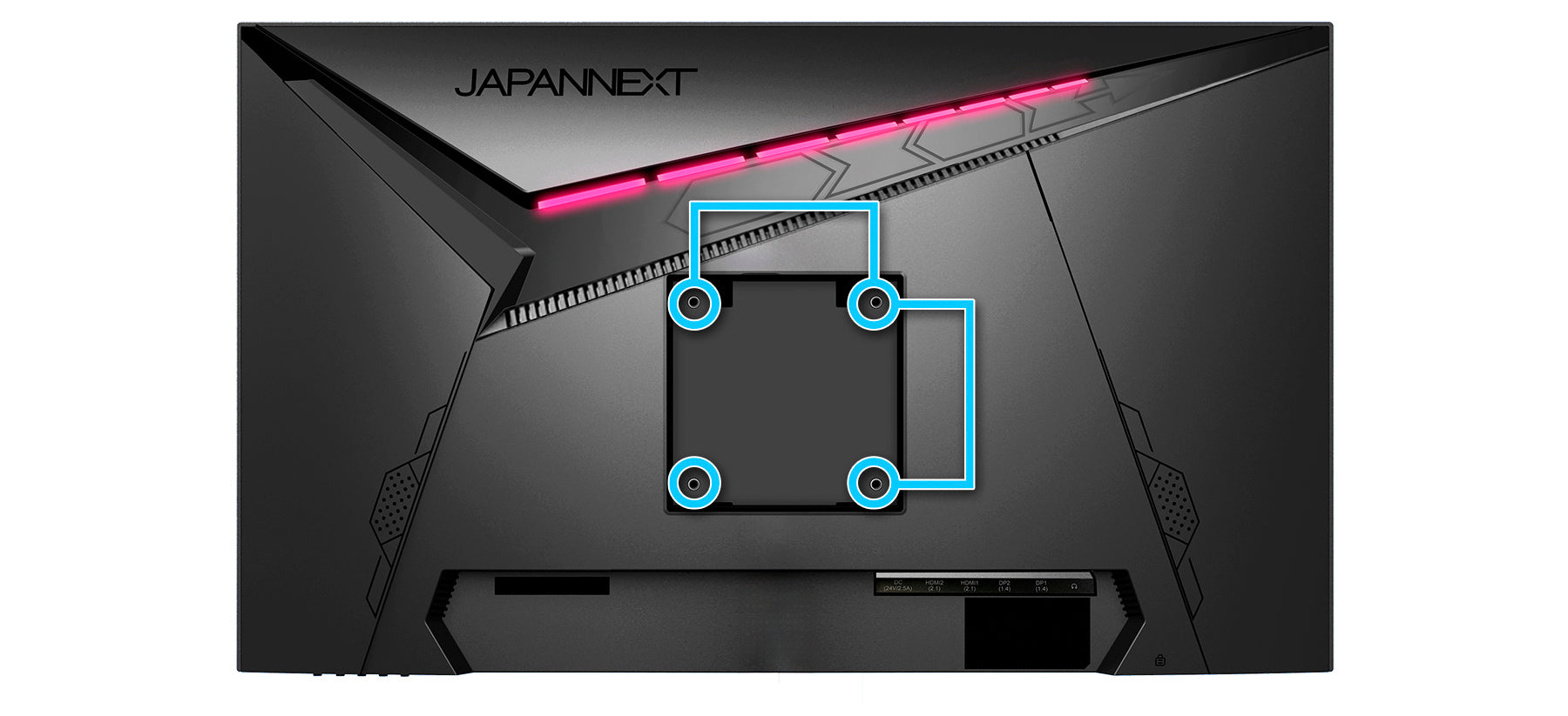 同梱のVESA用スペーサーを使用することで100x100mmのVESAマウントに対応、モニターアームやモニタースタンドへの取り付けが可能です。