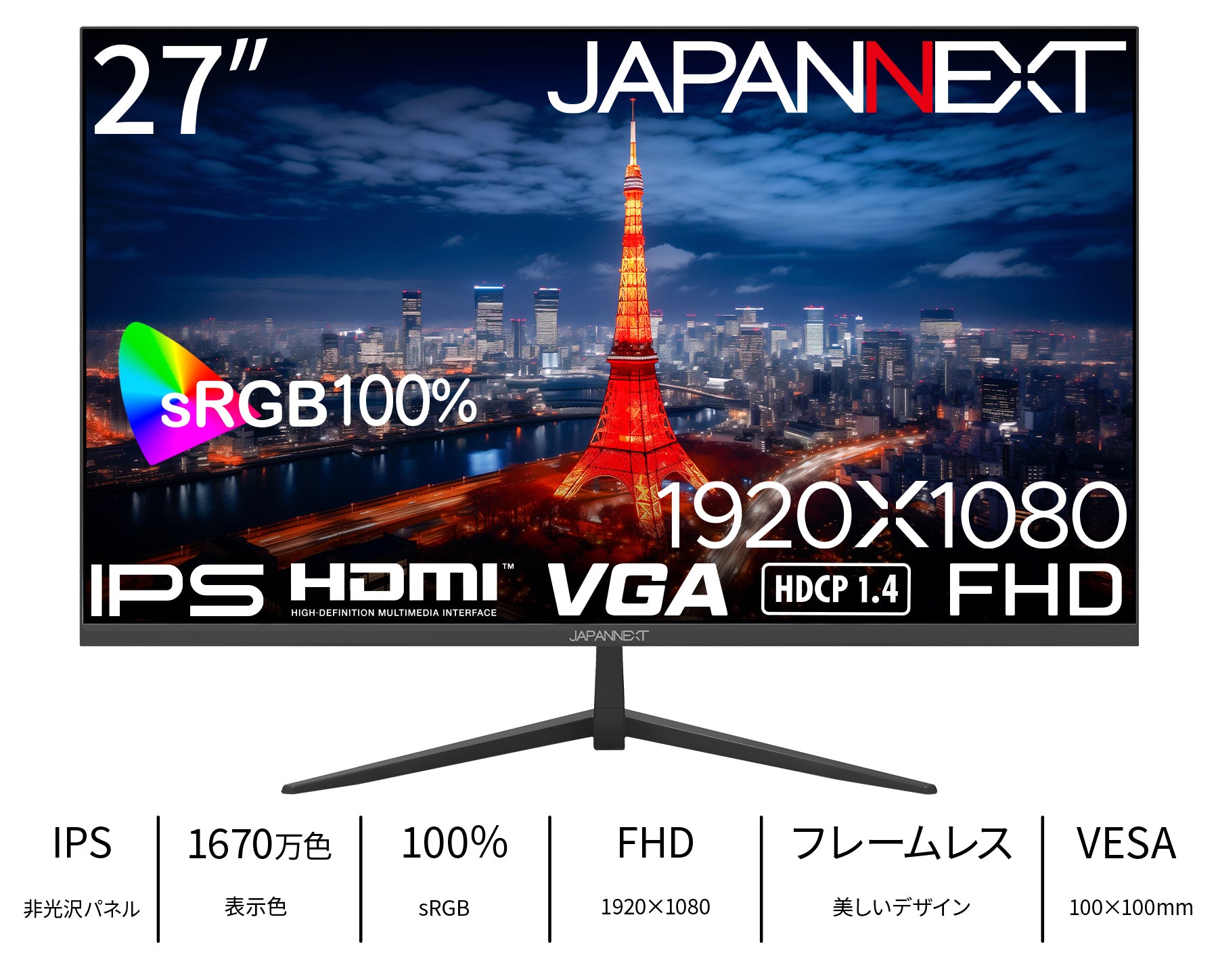 27インチのIPSパネルを搭載、使いやすいフルHD(1920x1080)解像度に対応した液晶モニターです。