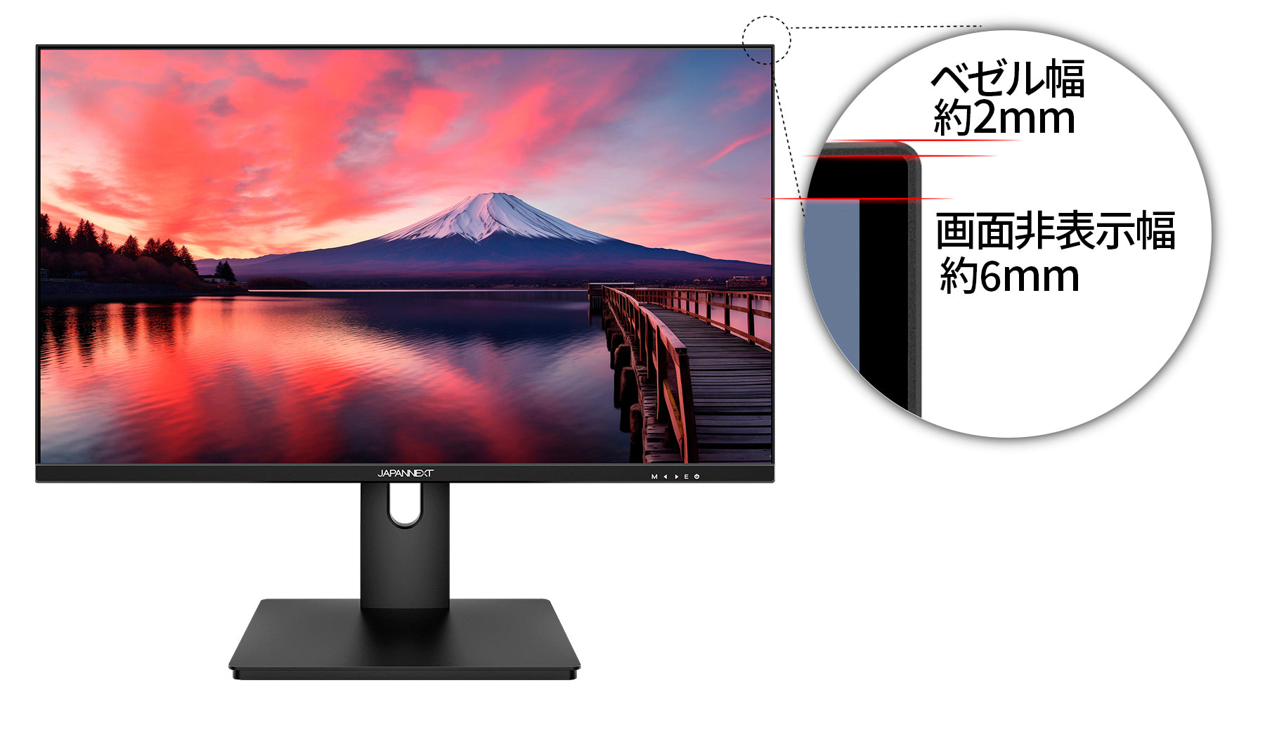 上下左右178°の視野角度を持つIPSパネルは標準的なTNパネルと異なり、 斜めから見ても色やコントラスト変化がおきにくい鮮明な画像を映し出します。