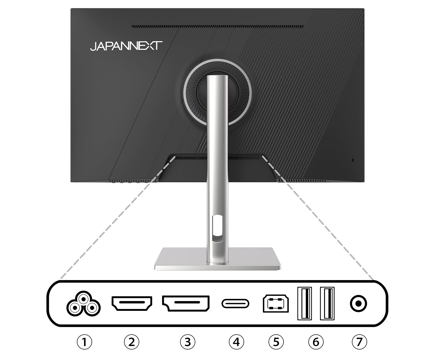 100x100mmのVESAマウントに対応しますので、別売りのモニターアームなどに使用が可能です。