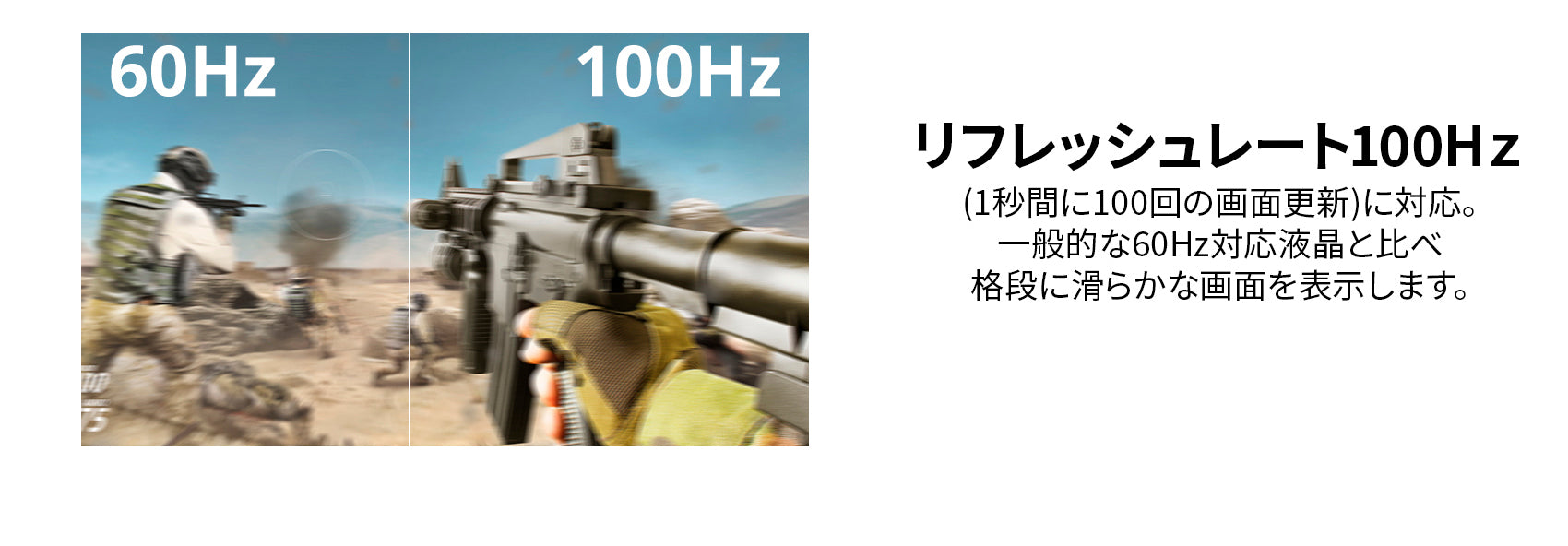 AdaptiveSync(FreeSync)テクノロジーはゲームプレイにおいて重要なフレームを安定させて、 どんなフレームレートでもなめらかなアーチファクトフリー性能を実現します。 ※AdaptiveSync(FreeSync)からG-Syncへの互換性があります。 (一部の機種を除きます。)