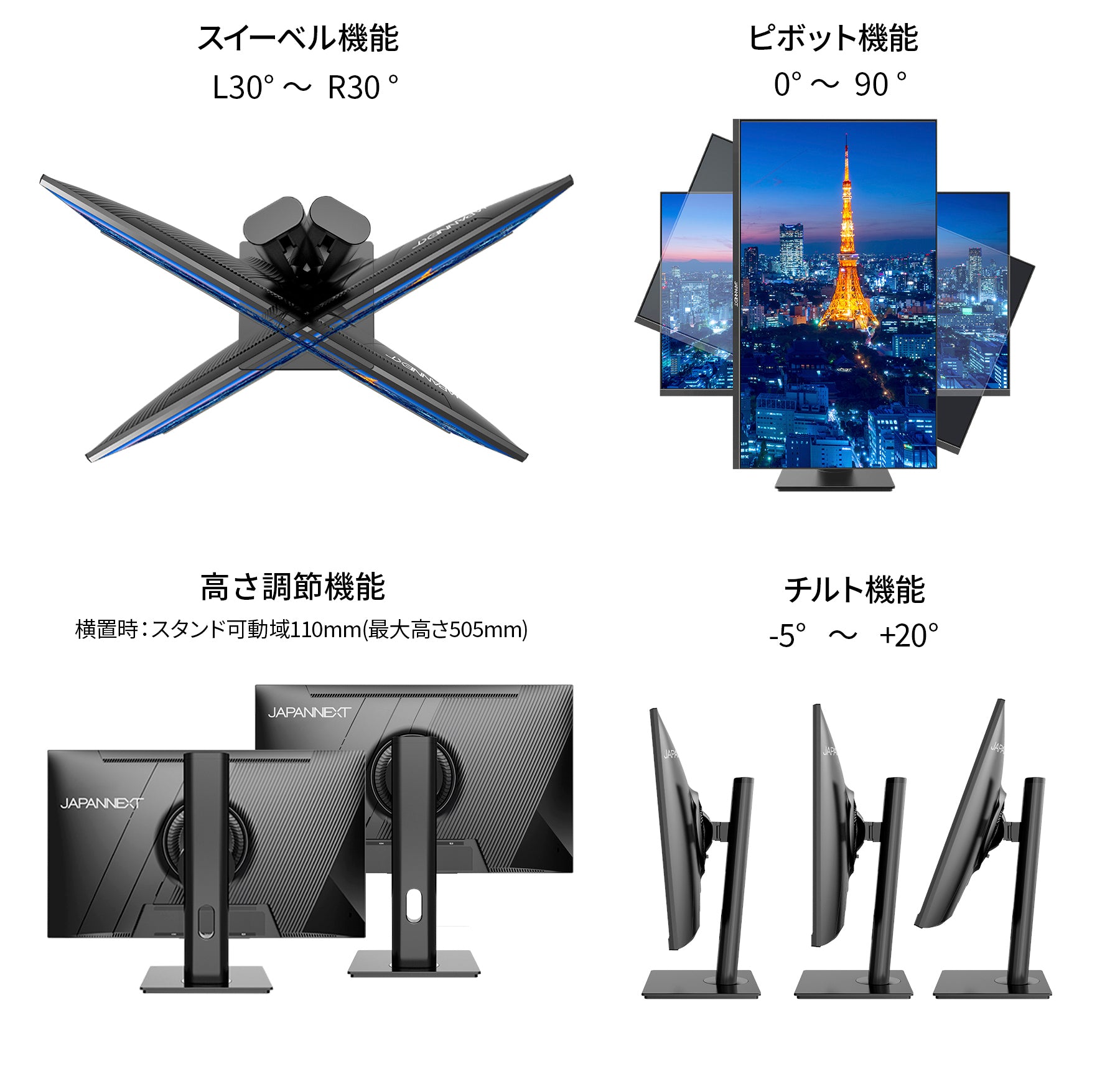 昇降式マルチスタンド搭載 27” IPSパネルモニター