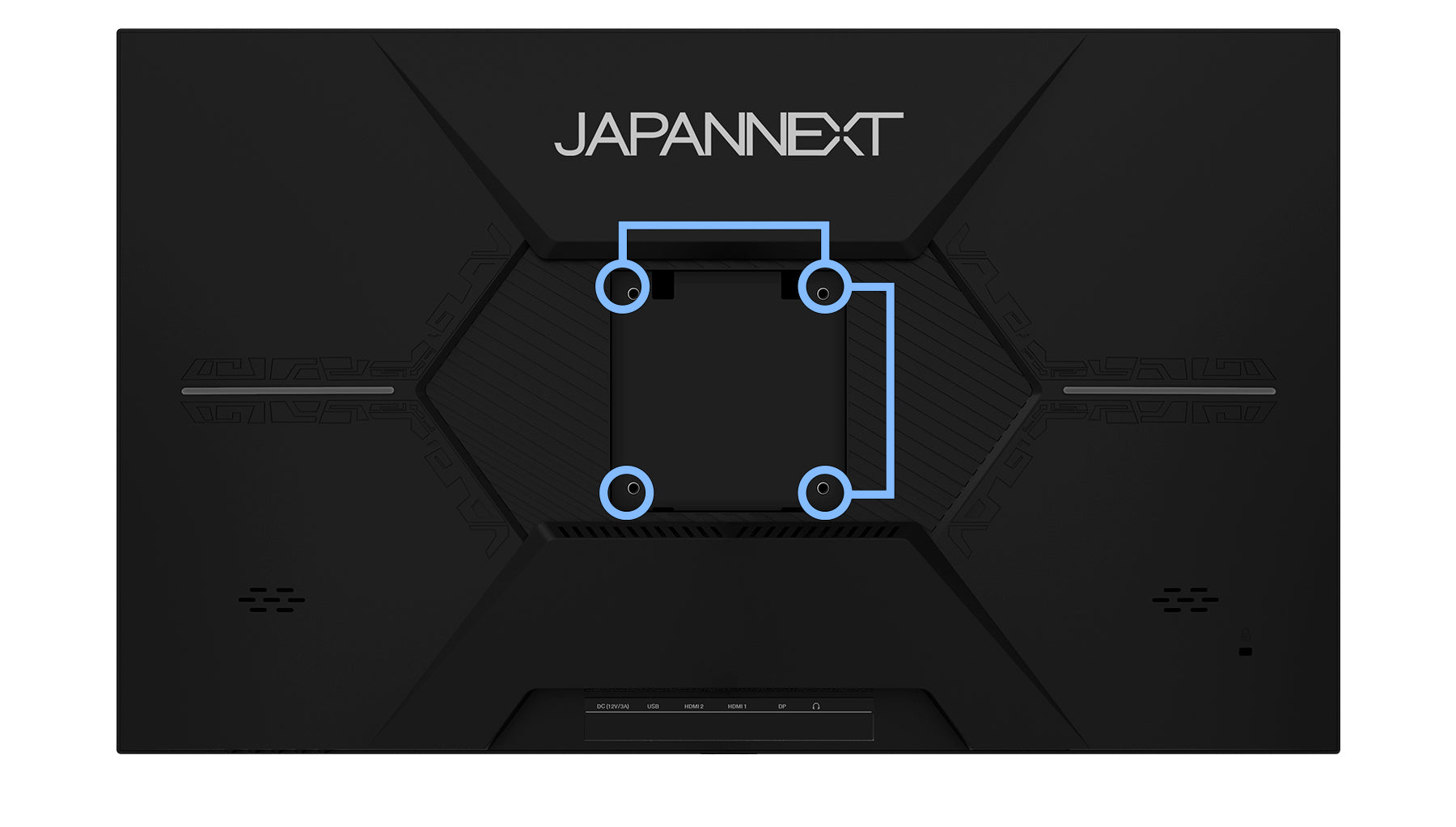 100mmx100mmのVESAマウントに対応、別売のモニターアームやモニタースタンドへの取り付けが可能です。