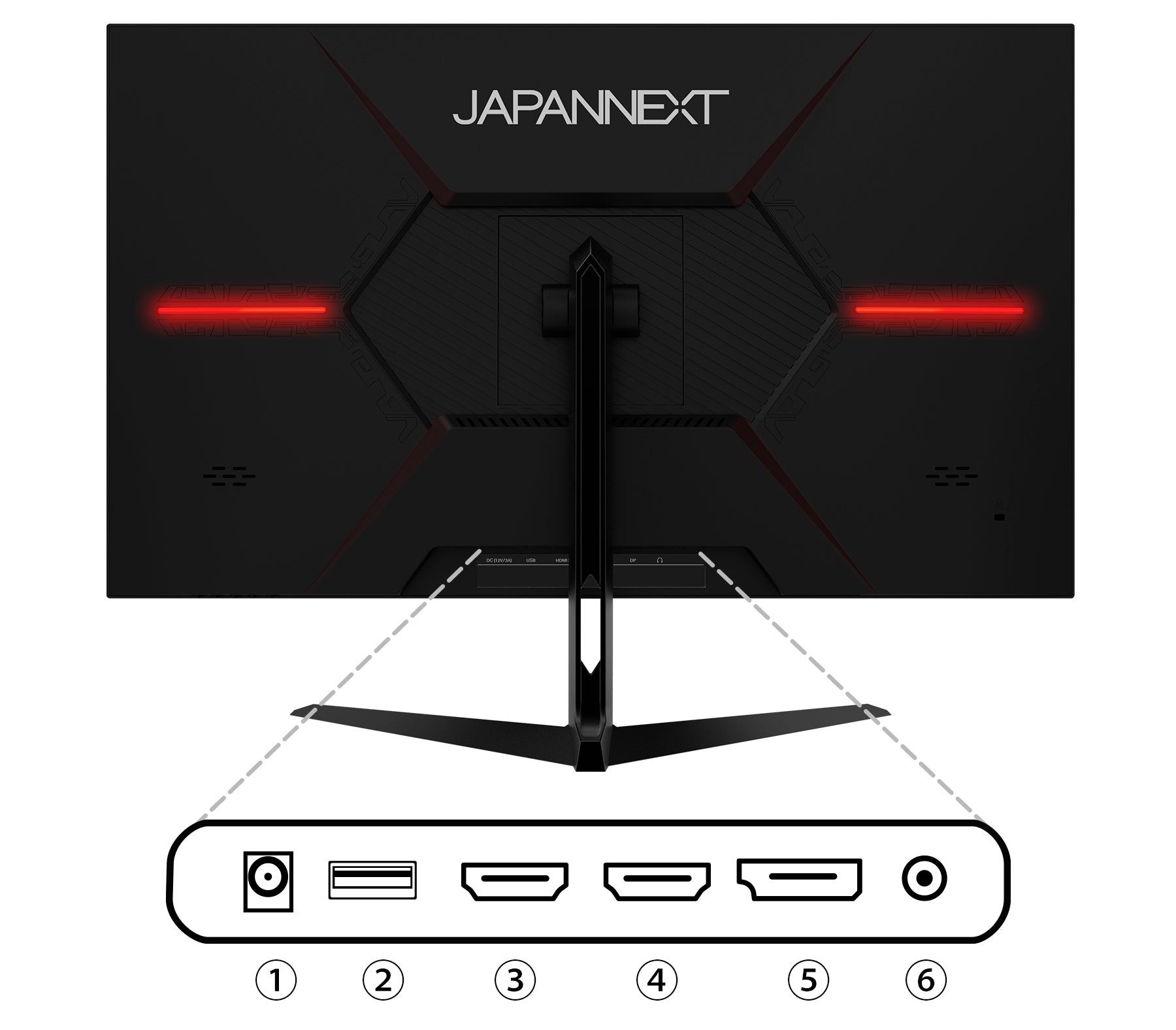 映像入力端子はHDMI2.0 x2(240Hz対応)、DisplayPort1.2 x1(240Hz対応)を搭載します。フルHD解像度でPS5との120Hz接続に対応、ゲーミングPCだけでなくコンソールゲームでも高いリフレッシュレートでのゲームプレイが可能です。