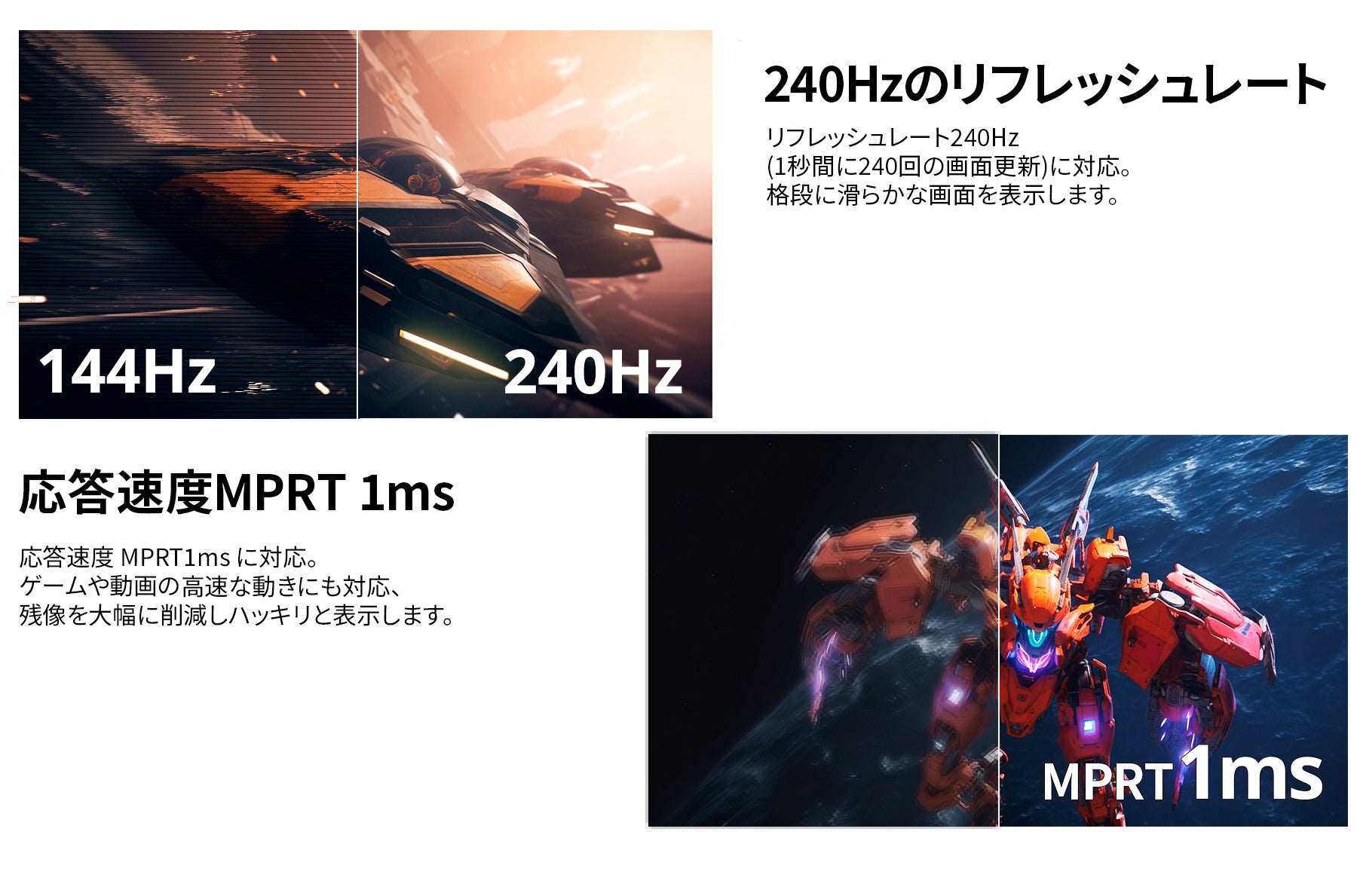 高速リフレッシュレート/240Hz、応答速度/MPRT:1ms 対応