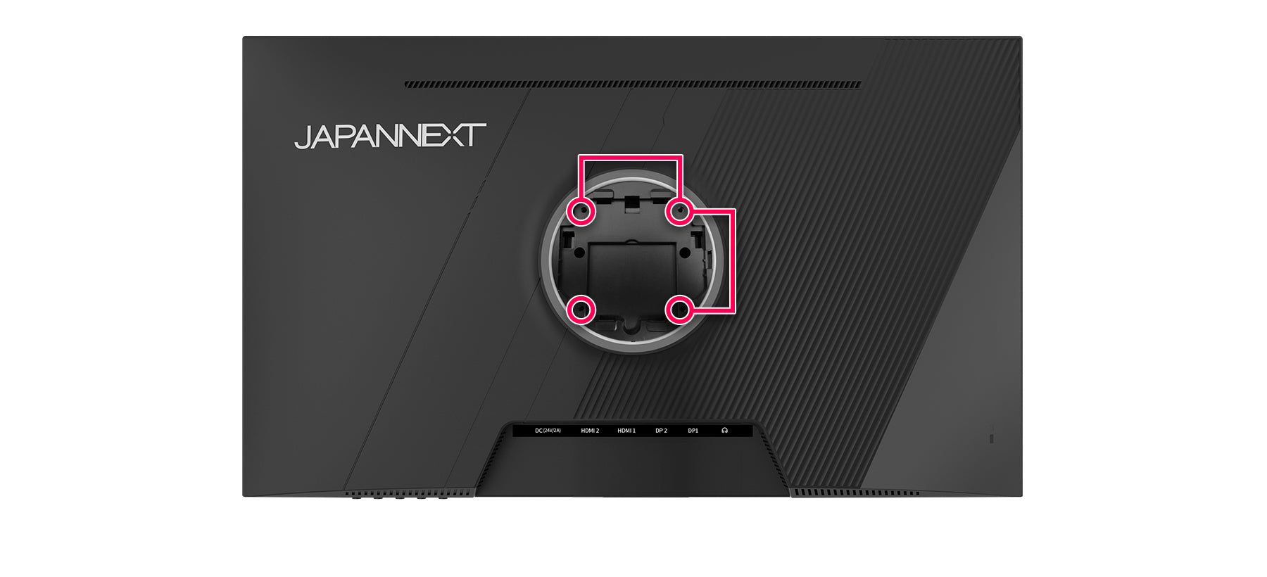 75x75mmのVESAマウントに対応しているので最も少ないモニターアームやモニタースタンドなどへの取り付けが可能です。