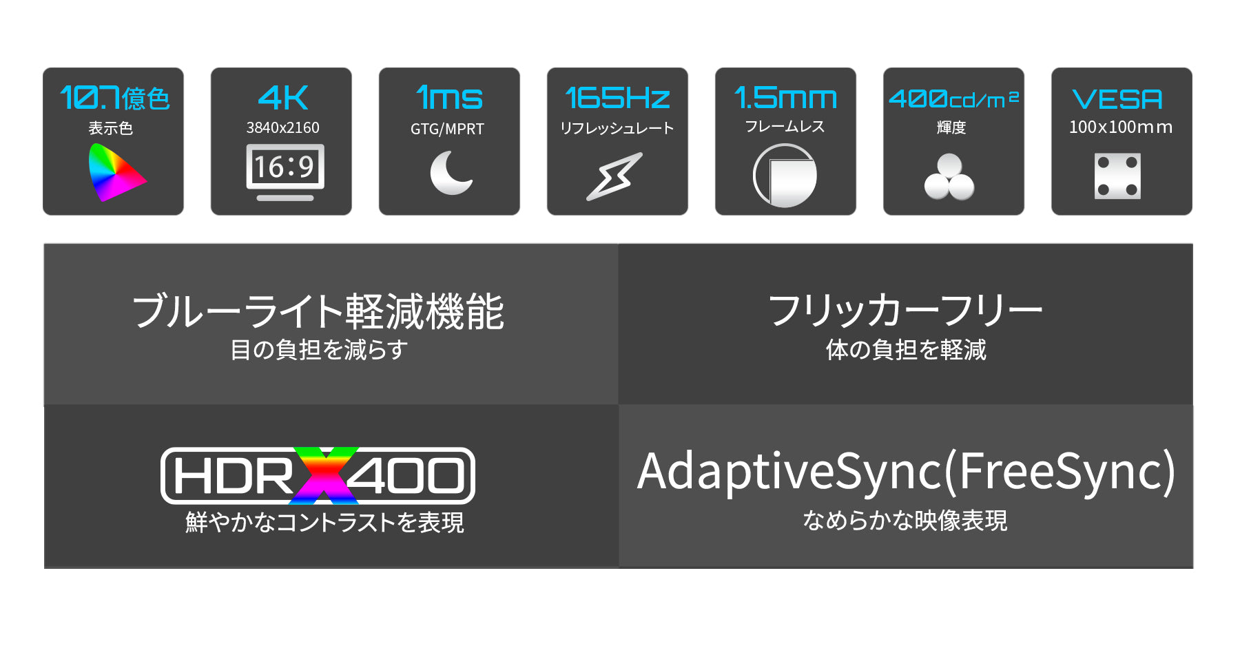 ※MPRT 1msはリフレッシュレート: 100Hz以上で有効となります。