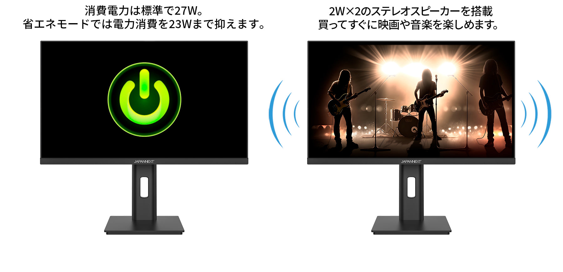 上下左右178°の視野角度を持つIPSパネルは標準的なTNパネルと異なり、 斜めから見ても色やコントラスト変化がおきにくい鮮明な画像を映し出します。