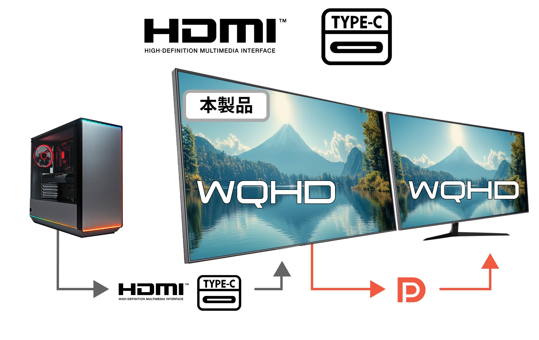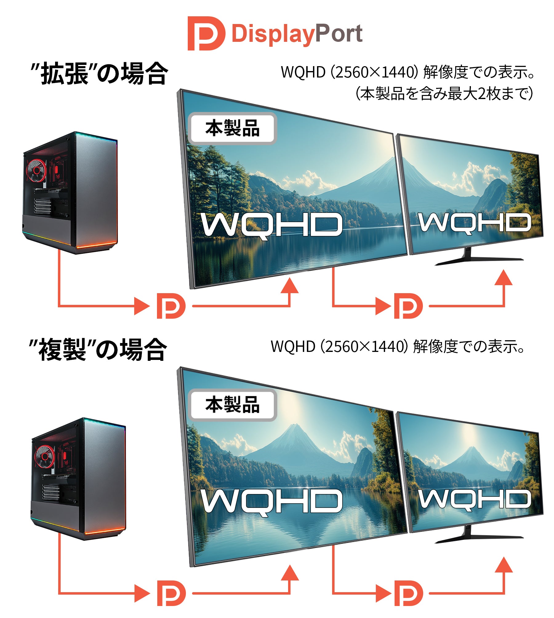 ※PCがDisplayPort 1.2以上に対応している必要があります。