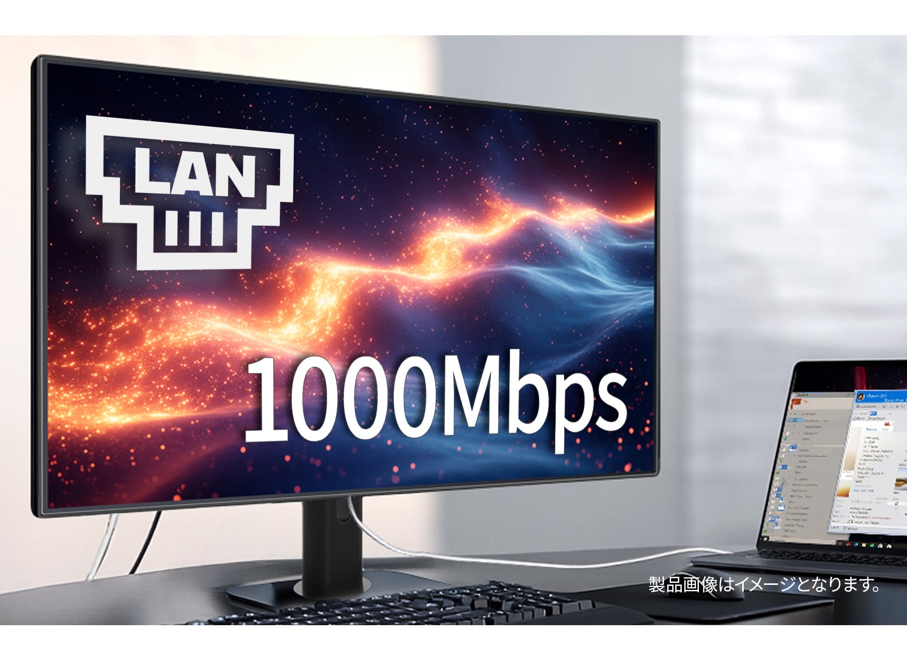 LANポートを搭載、モニターにLANケーブルを接続することで、有線の安定したネットワーク接続が可能になります。ノートPCからモニターへはUSB Type-Cケーブルを1本接続するだけで、インターネット接続と映像出力、さらには対応のノートPCへの給電も同時に行うことが可能です。*HDMI、DisplayPort接続時には、付属のUSB-B to Aケーブルを使用する必要がございます。