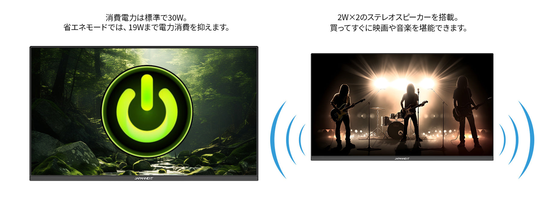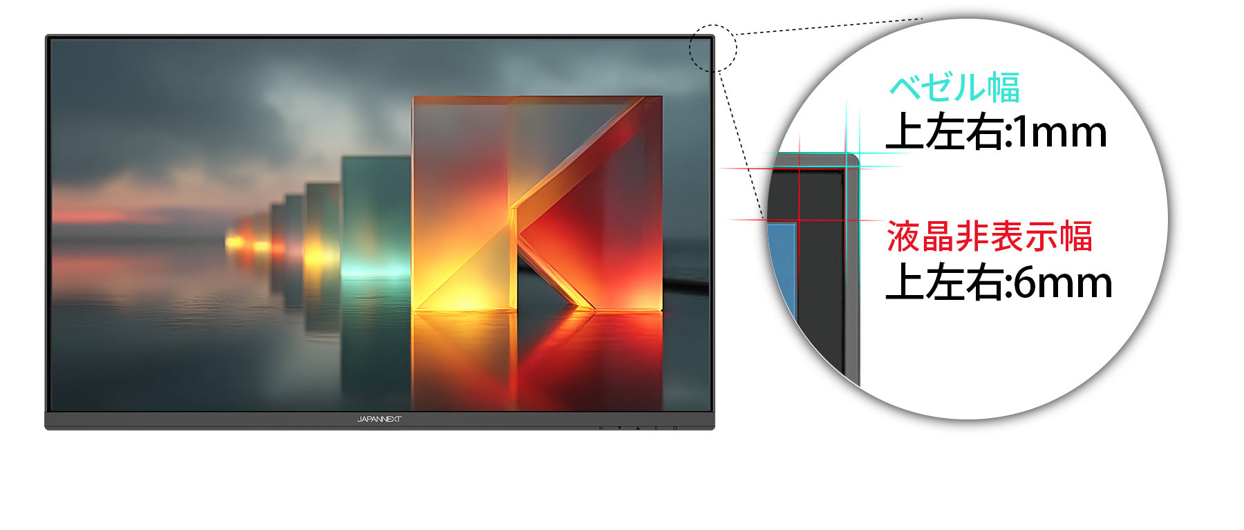 あらゆる角度から見ても色やコントラストの変化がおきにくいIPSパネルを搭載し、広視野角上下左右178°を実現します。