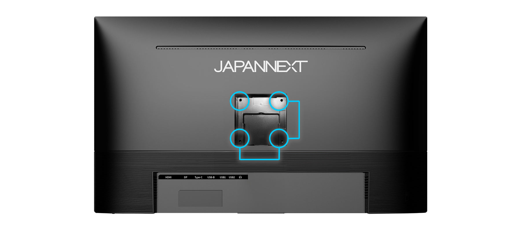 75x75mmのVESAマウントに対応しますので、別売りのモニターアームなどに使用が可能です。