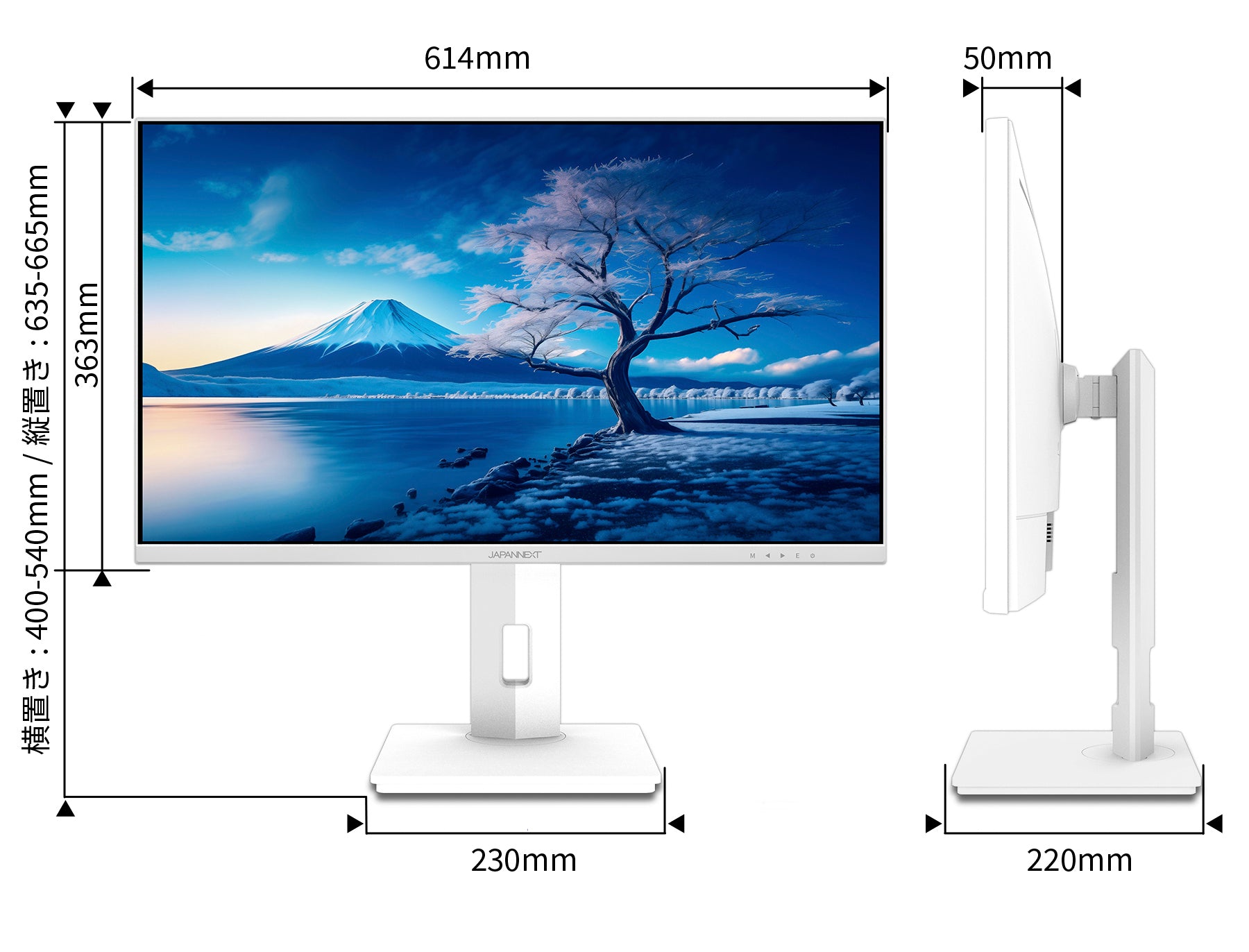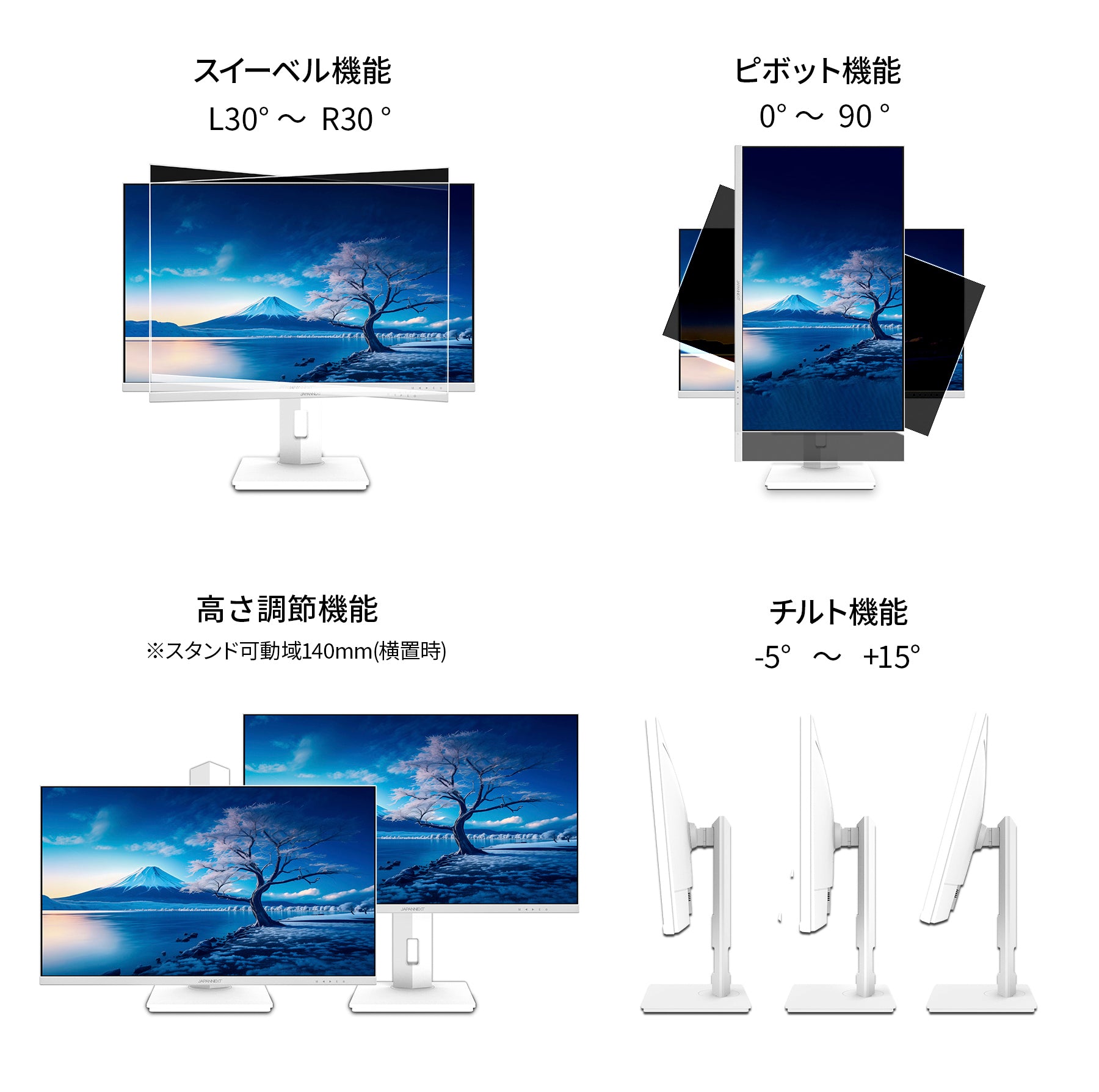 HDR(ハイダイナミックレンジ)に対応。明るい部分も暗い部分もくっきり表現しリアルに迫った深みのある映像を演出します。HDR対応のブルーレイディスクやビデオ・オン・デマンド、ゲームなどの表示が可能です。高さ調整が可能な昇降式スタンドを搭載、最大140mm(横置時)の範囲内で最適な高さに画面を調整可能です。また縦画面として使用出来るピボット(回転)機能にも対応します。