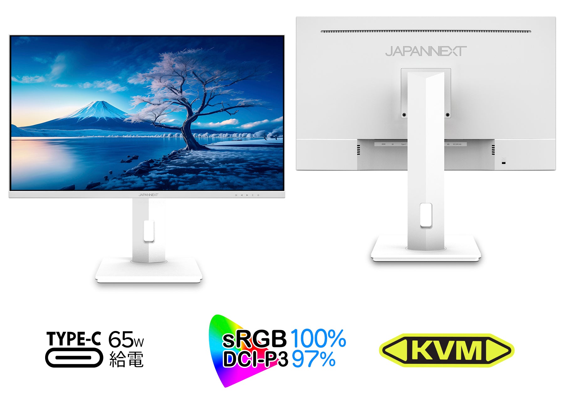 ホワイトカラー採用 USB-C給電 KVM機能搭載