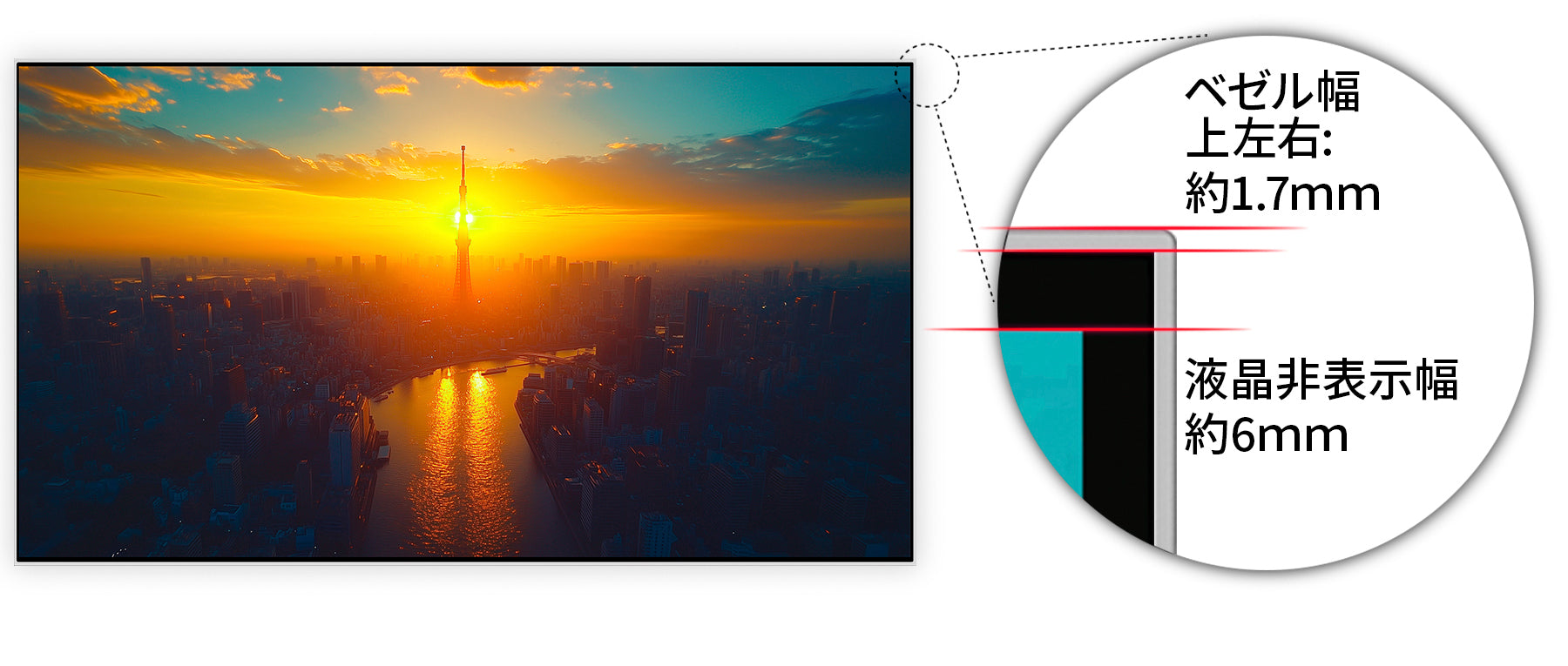 インテリアに馴染やすい狭額フレームを採用、設置する場所に困らない省スペース設計となっています
