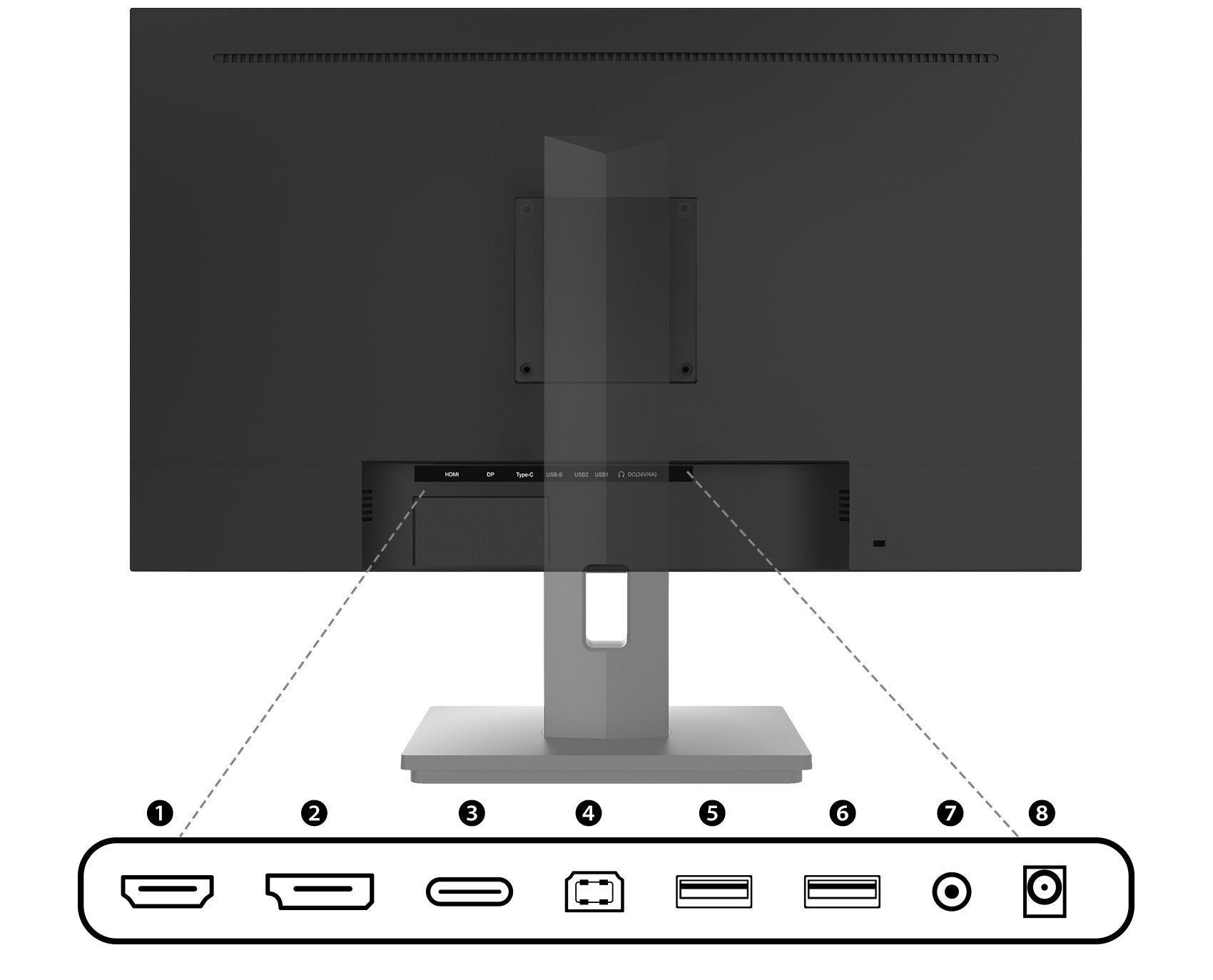 映像入力端子はHDMI1.4 x1 DisplayPort1.2 x1、USB-C(65W給電)x1を装備。様々なタイプの機器との接続が可能です。USB-C(65W給電)は、対応のPCであればUSB-Cケーブル1本でモニターへの映像出力とノートPCへの給電が可能。ケーブル1本でスッキリ接続出来るだけでなく、テレワーク、出社併用の場合などノートPCのACアダプターを持ち運ぶ必要が無くなります。