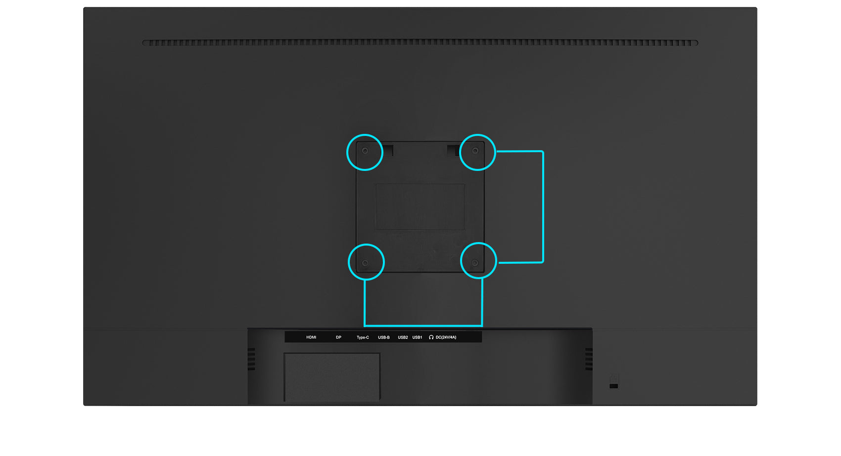 100mmx100mmのVESAマウントに対応しているので別売のモニターアームやモニタースタンドへの取り付けが可能です。