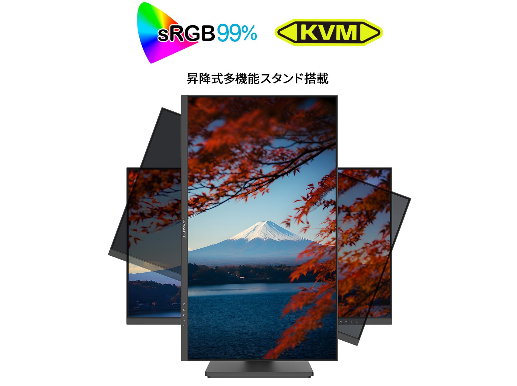 sRGB:99% USB-C給電 KVM機能 昇降式多機能スタンド搭載