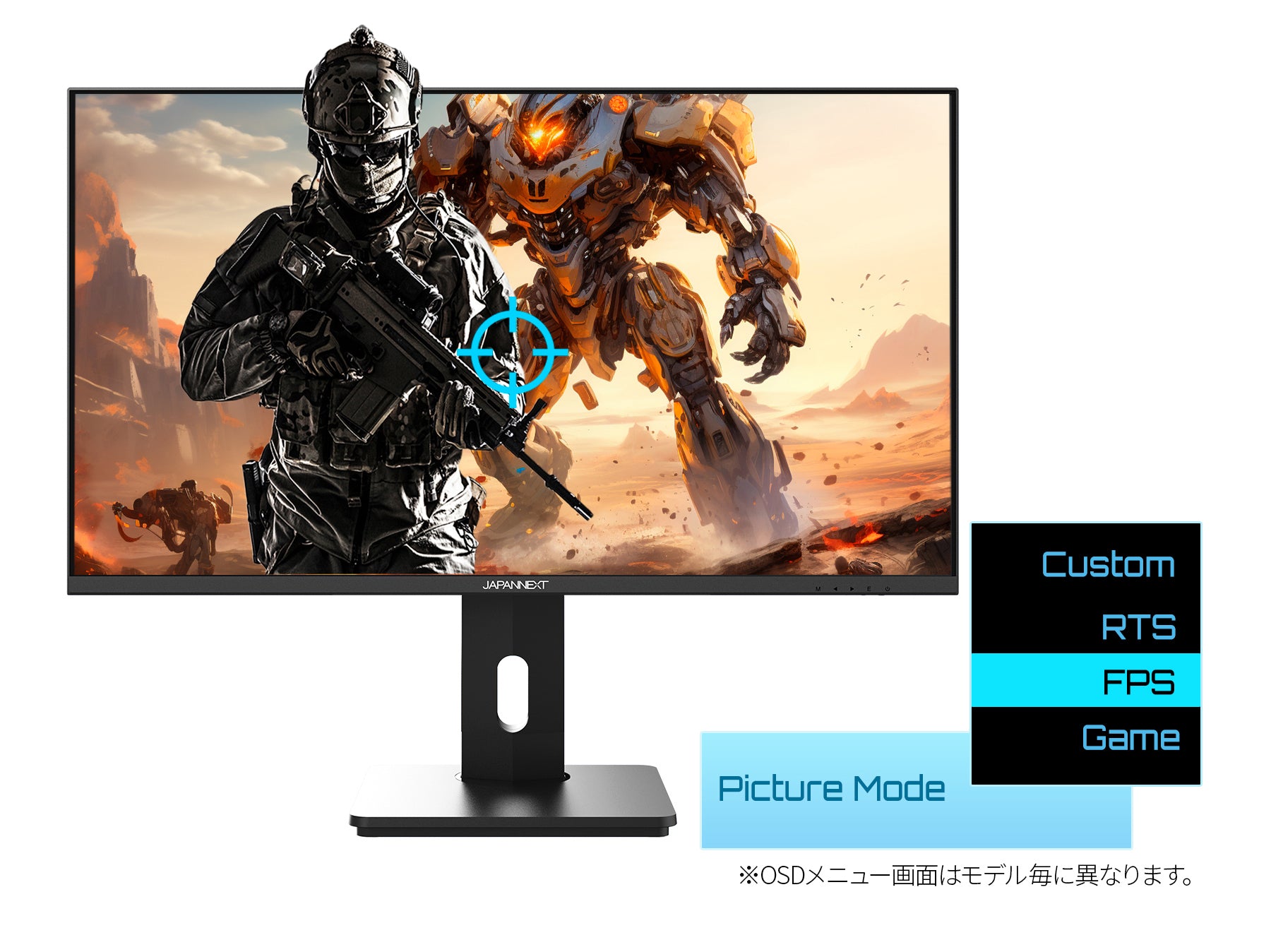 144Hzの高速リフレッシュレート、1ms(MPRT)の高速応答速度により、より滑らかな映像表示を可能にし、ゲームプレイに最適です。3つのゲームモードを搭載しFPSなどゲームに合わせて変更可能です。※MPRT1msはリフレッシュレート100Hz以上で有効。