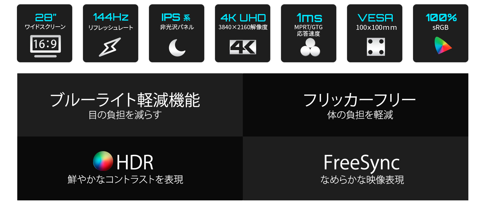 28インチ 144Hz/1msGTG対応 4Kゲーミングモニター