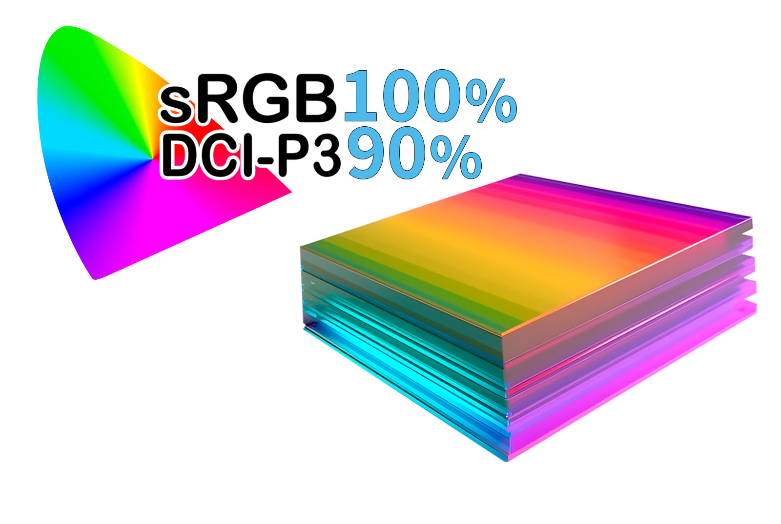 sRGB100%、DCI-P3 : 90%の高性能パネルが画像を鮮やかな色彩でくっきりと表示します。 快適な写真鑑賞やウェブブラウズができるだけでなく、 色の正確性や一貫した明るさを常に求める専門用途にも最適です。